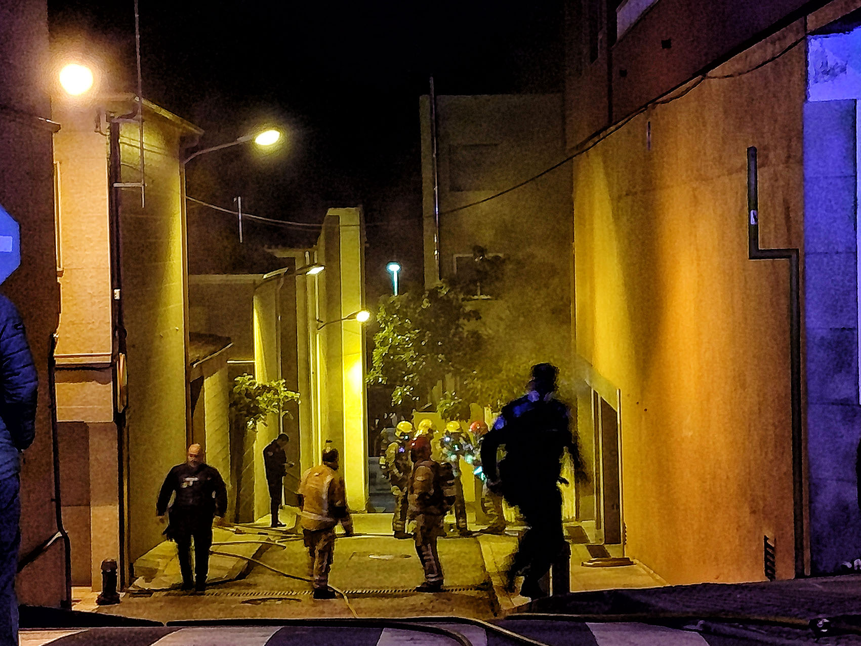 El primer signo de alerta lo percibió una vecina de un edificio cercano quien dio la voz de alerta al sentir unas explosiones mientras dormía, pese a que en un primer momento no supo localizar el origen del fuego; enseguida el siniestro dio señales de su localización al comenzar la emanación de un humo muy denso y tóxico por la entrada del garaje afectado. Probablemente las explosiones procedían de reventones de los neumáticos afectados por el fuego.