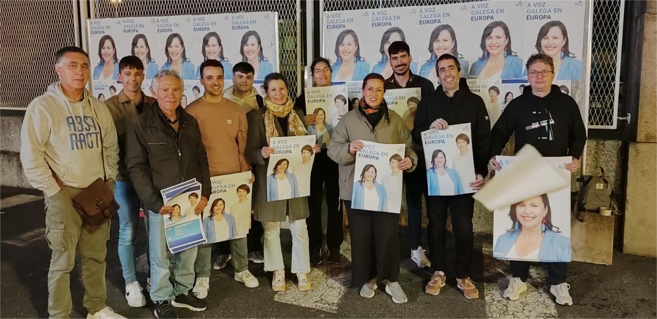 Equipo del BNG en la noche de la pegada de carteles