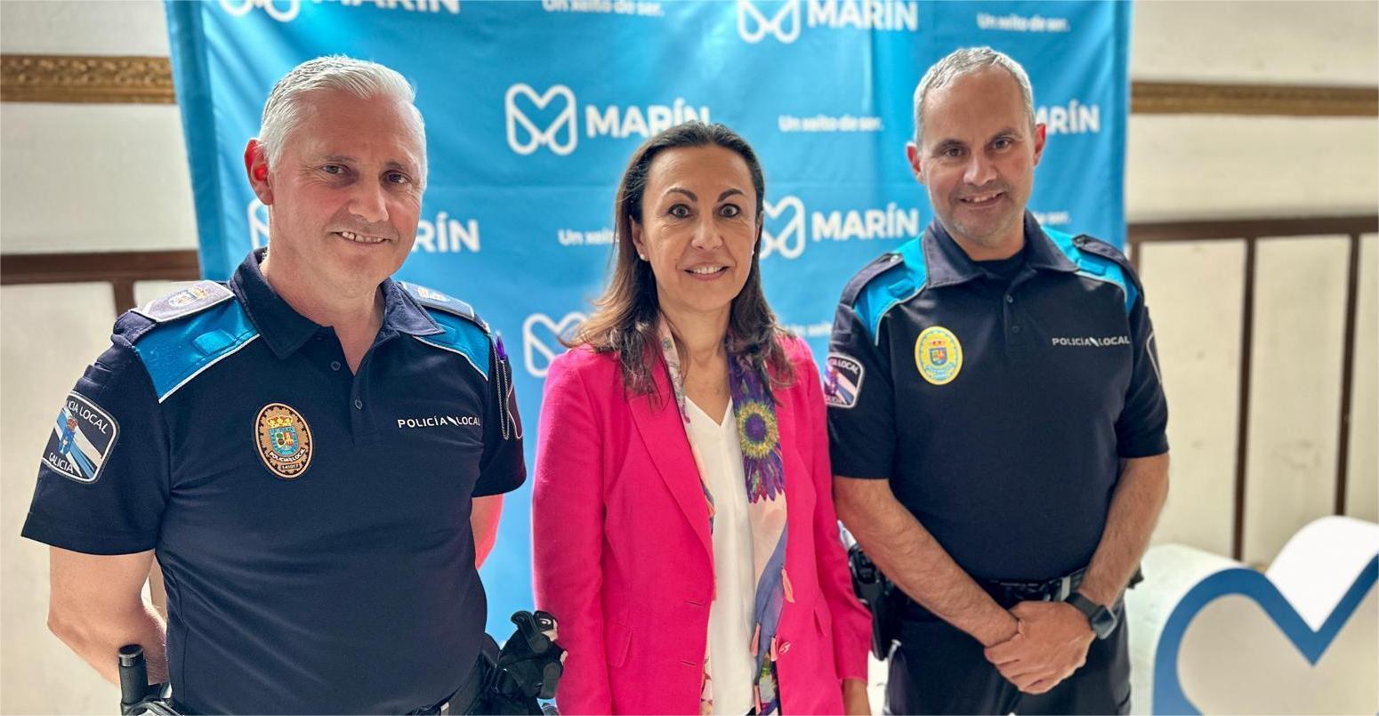Tal como adelantó Carriola hace unos días, dos agentes de la Policía Local de Marín fueron distinguidos con la medalla de oro de la Policía Local que les fue entregada ayer en Cangas