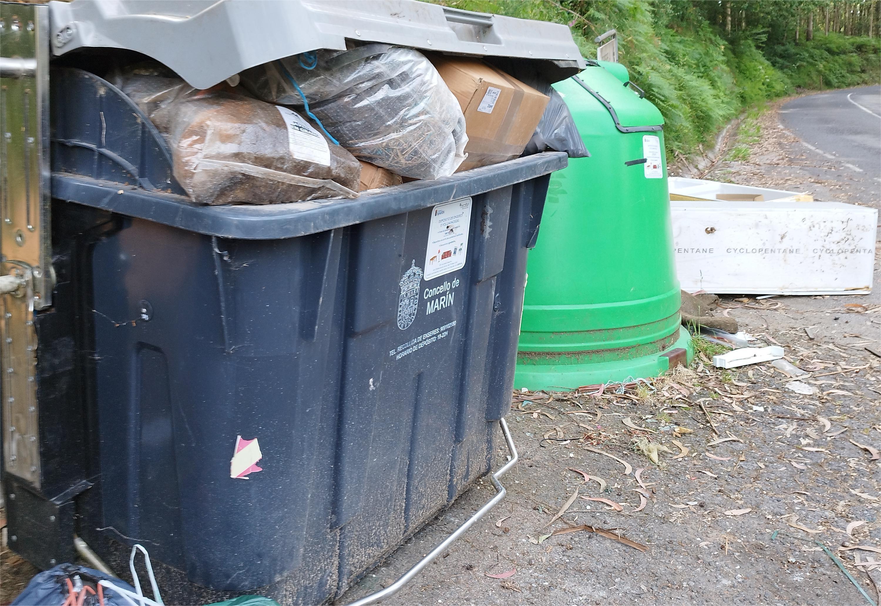 O contenedor que na imaxen vemos, abre a medias (se levas Unha bolsa nas mans, o empurrar co pé, tes que empurrar pra riba senon tropezas coa tapa.