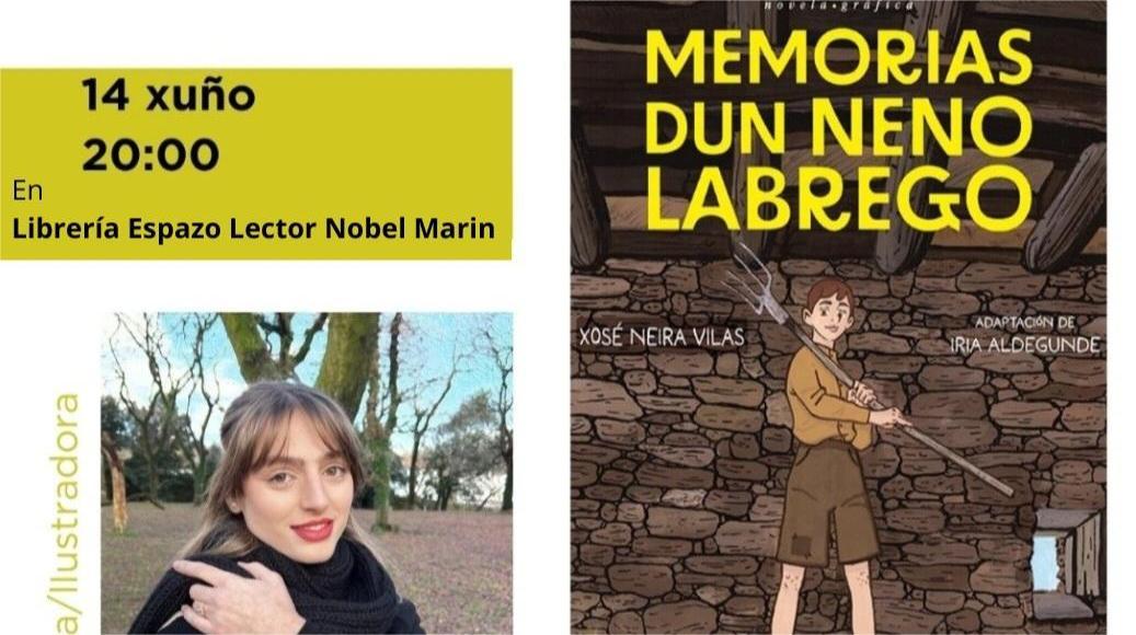 Da man do Ateneo Santa Cecilia que tiña anunciado este acto para hoxe no local da súa sede, preséntase hoxe a novela gráfica da autoría de Iria Aldegunde en formato cómic do clásico “Memorias dun Neno Labrego”, de Xosé Neira Vilas pero cun cambio de lugar da presentación que se fará hoxe ás oito na librería Espazo Lector Nobel Marín”, ubicada na rúa Jaime Janer.