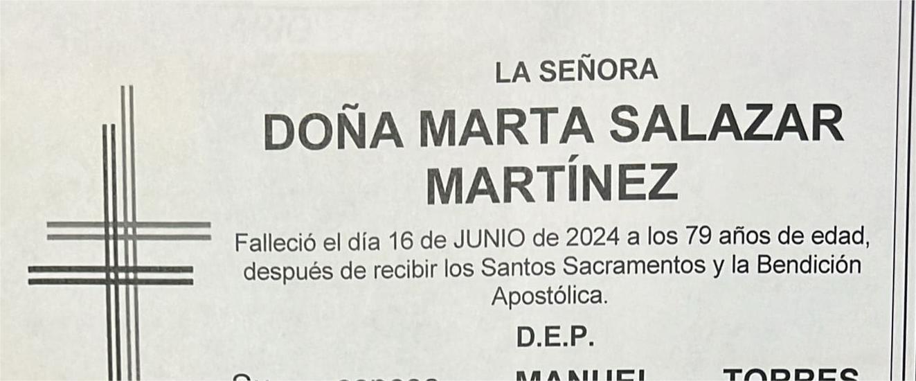 Tenemos que registrar la mala noticia del fallecimiento de Marta Salazar Martínez, esposa de Pipo Torres e hija del que fuera propietario de los cines de Marín popularmente conocido por “Salazar”.