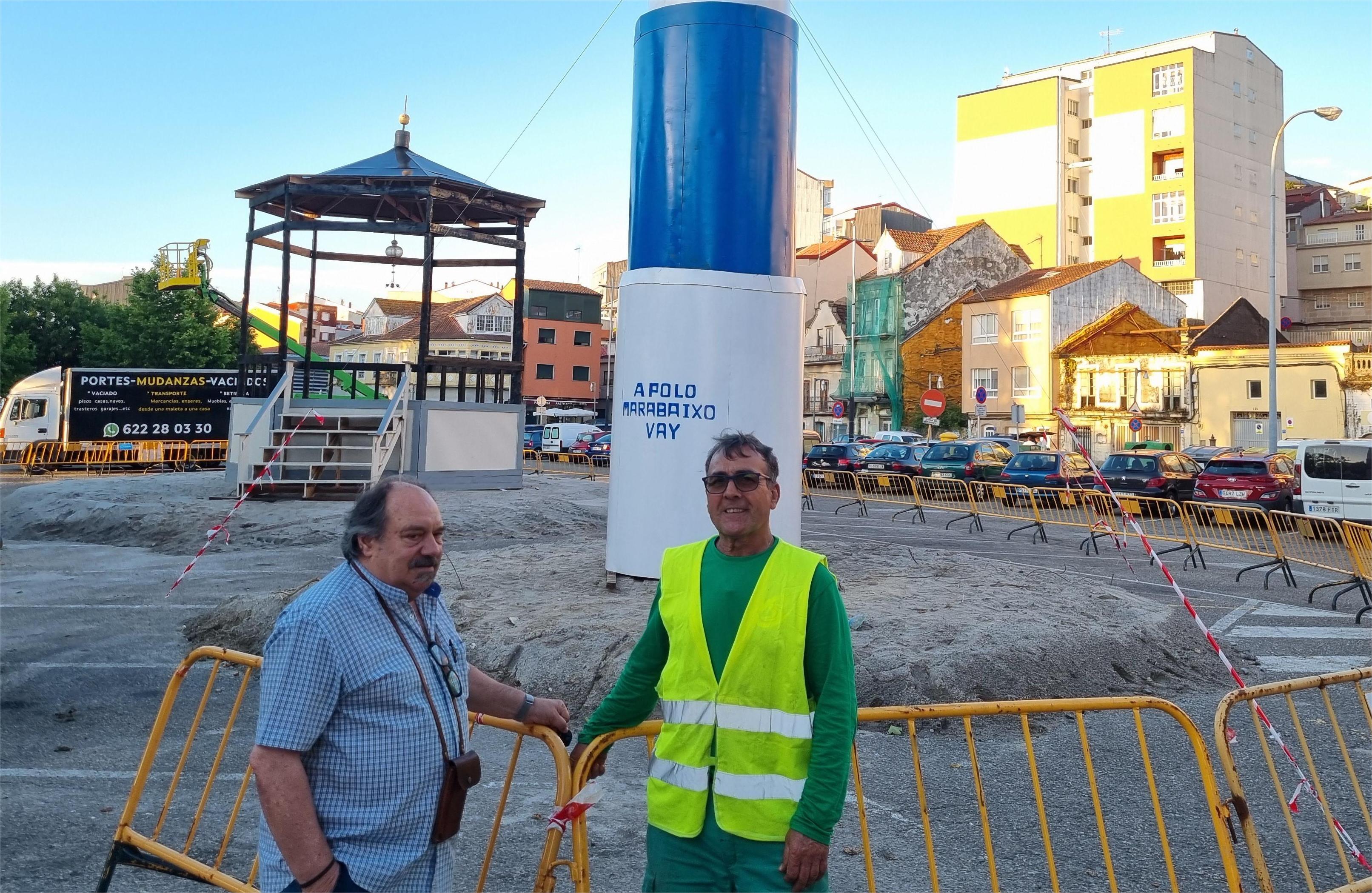 Impresionante un año más el trabajo de los “Visiños e Amijos do Cantodarea” que bajo la batuta de Chicho Montoto y “Morgan” han montado en plena plaza do Reguieiro una reproducción del palco de la música de la alameda que, antes de antes de arder el próximo domingo, acogerá varias actuaciones musicales como corresponde al recinto
