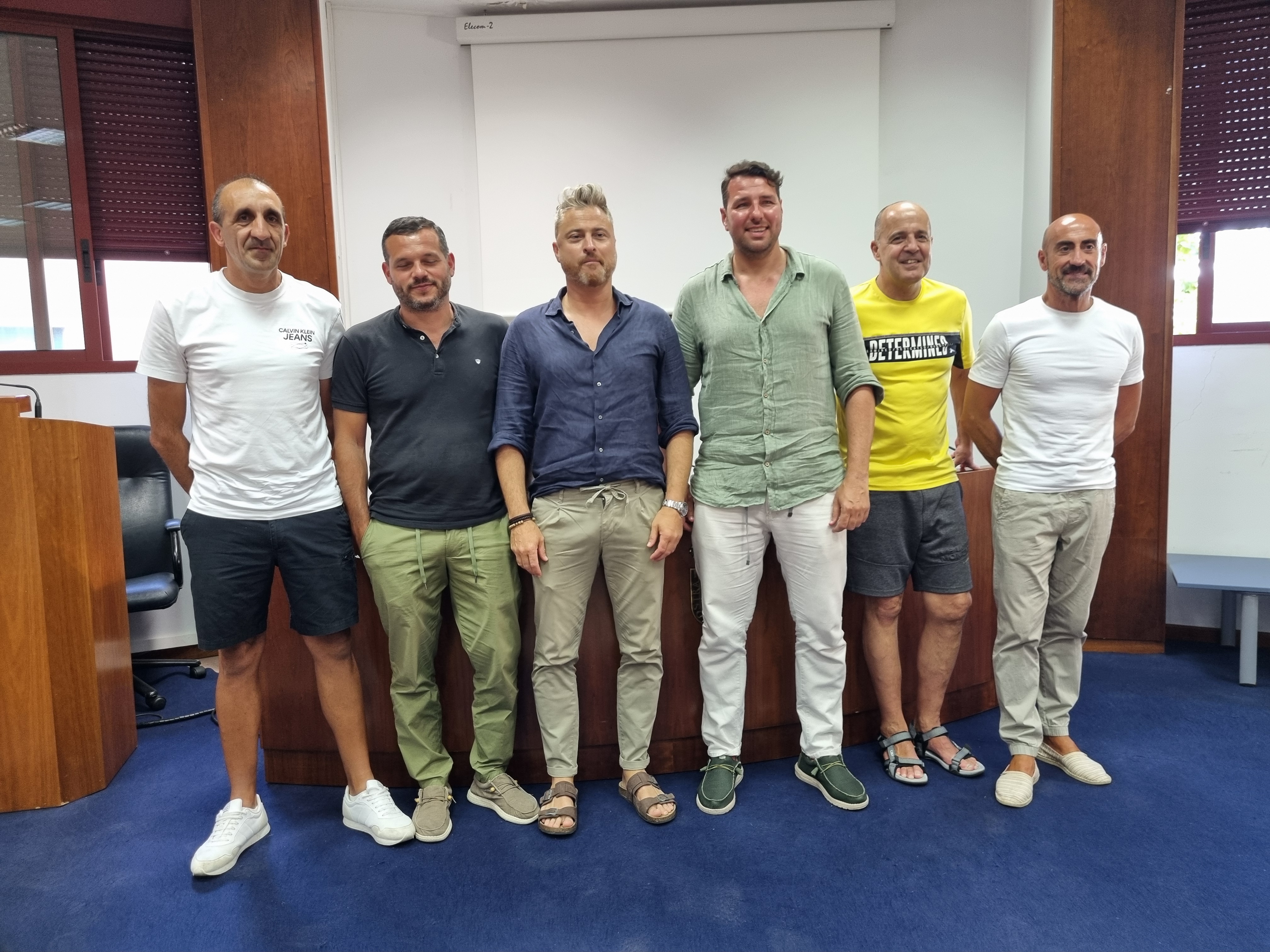 Miguel Pazos,(en el centro) nuevo presidente del club tomó entonces la palabra, corroborando la referencia a Garpar Pérez, para explicar la decisión que junto con el grupo antes relacionado, tomaron la decisión de echar mano de un club histórico tras haberse reunido entre sí y con algunas entidades e incluso clubs deportivos a los que se les propuso estrechar relaciones de proximidad y colaboración que beneficien al conjunto del deporte marinense.
