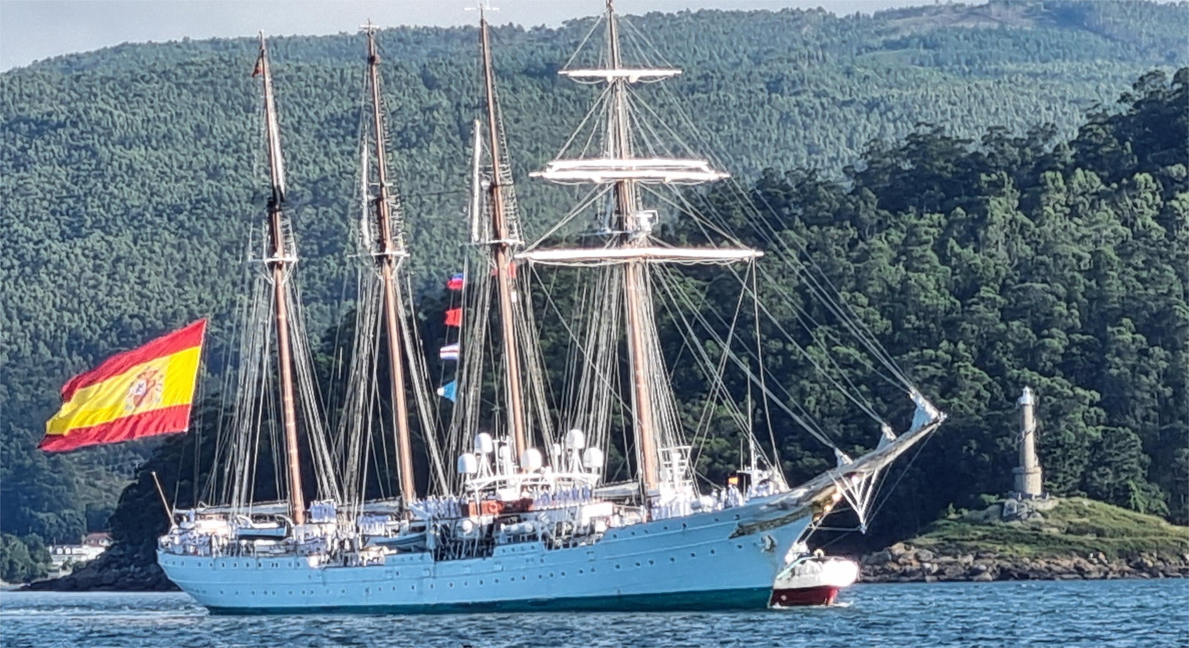 El buque escuele permanecerá ahora en Marín hasta el próximo miércoles. día 17, tras estar presente en el acto de Jura de Bandera de los aspirantes y Entrega de Reales Despachos a los nuevos oficiales que tendrá lugar el día 16, festividad del Carmen, Patrona de la Armada, acto que estará presidido por el Rey Felipe VI al que acompañarán miembros de la familia real como su hija, Leonor que el próximo año entrará como alumna en la Escuela Naval y realizará también el crucero por el mundo para culminar la segunda parte de su preparación militar iniciada este año en el Ejército de Tierra y que tendrá una tercera parte en la academia de Aviación en San Javier.