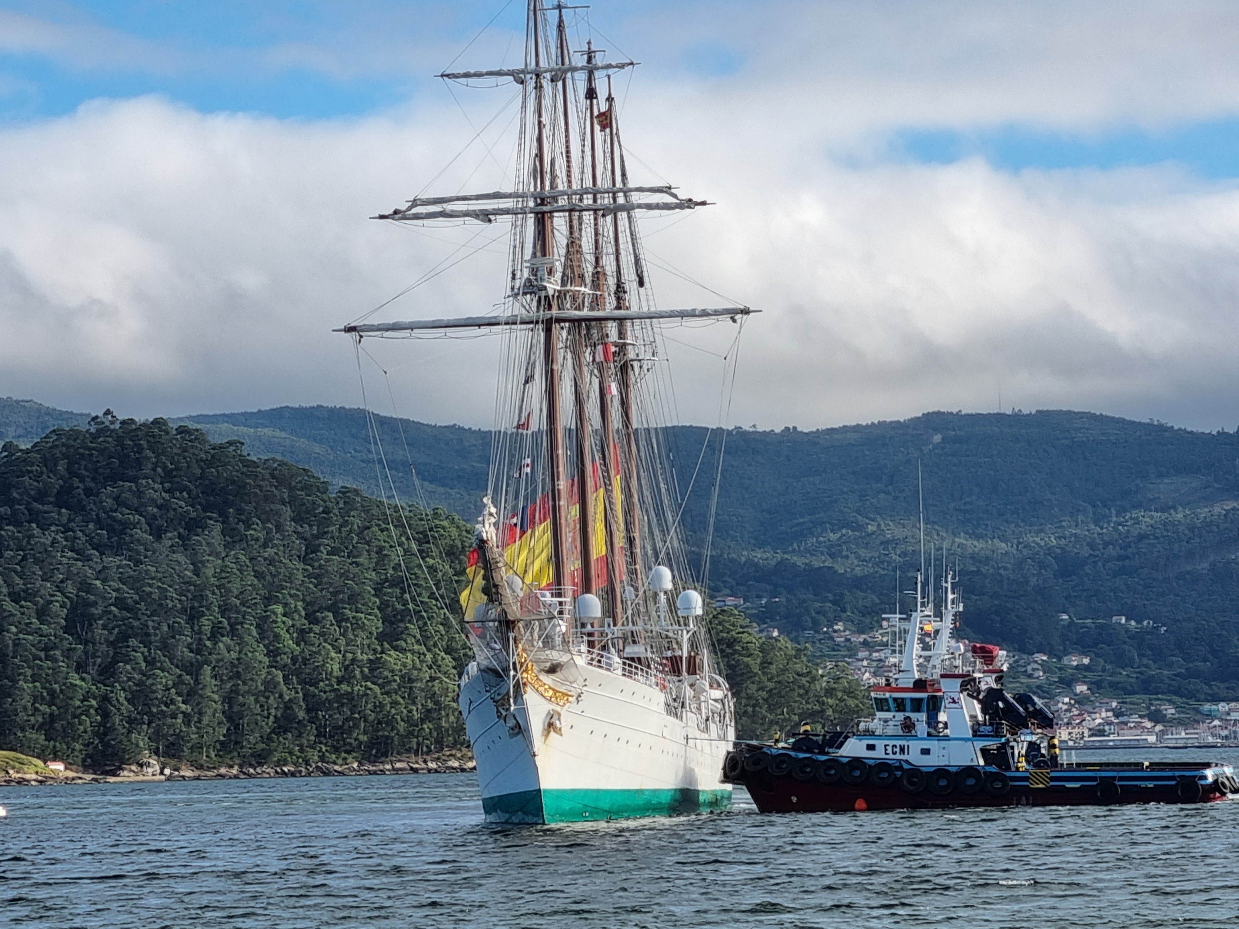Tal como estaba anunciado y con puntuliidad milimétrica entró en la dársena militar del Puerto de Marín el Buque Escuela Juan Sebastián de Elcano que permanecerá atracado en “Torpedos” hasta el próximo día 17
