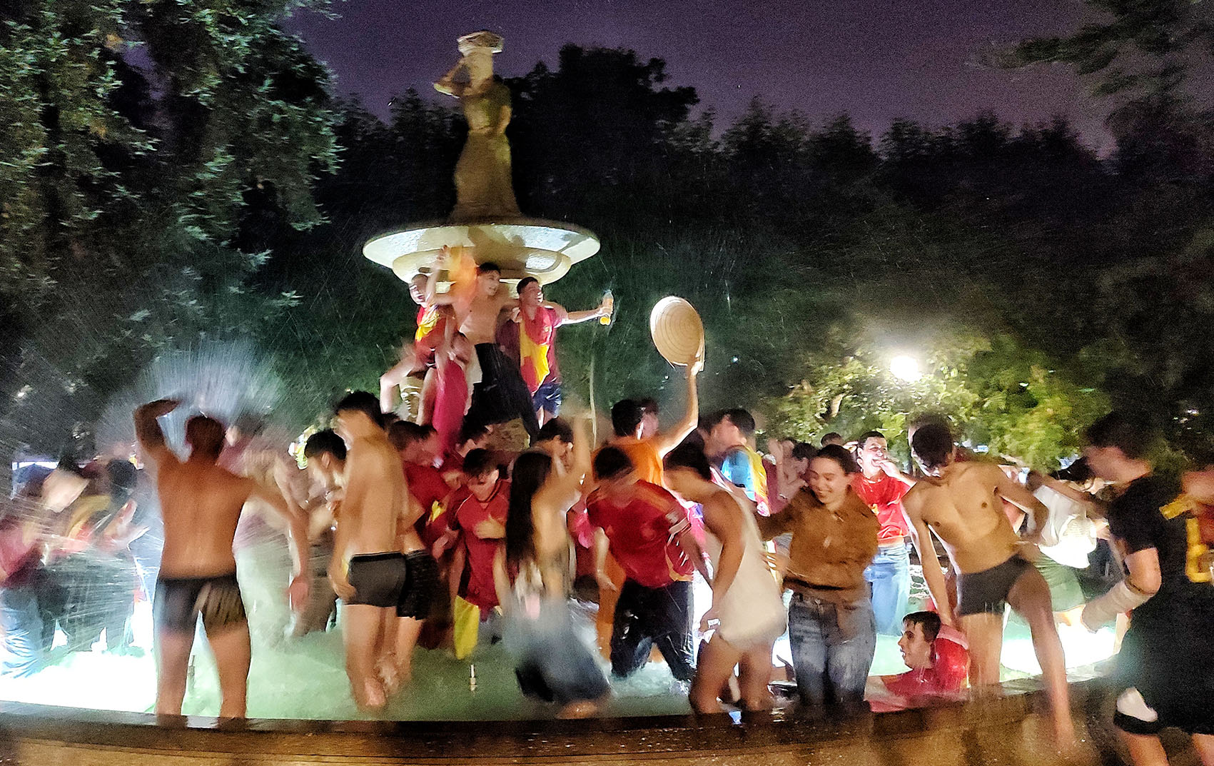 La celebración se desató al término del encuentro en los dos puntos en los que había pantalla, y también en los establecimientos hosteleros que habían instalado televisores en sus terrazas. Un grupo nutrido de jóvenes terminaron bañándose "en paños menores" en la fuente de la Alameda Rosalía de Castro, para celebrar la consecución del cuarto campeonato de Europa en manos de España, algo que ninguna otra selección nacional tiene en su poder.