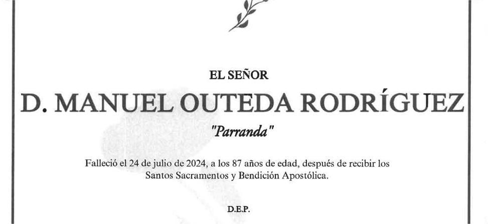 Fallece Don MANUEL OUTEDA RODRÍGUEZ, “Parranda”, a los 87 años de edad