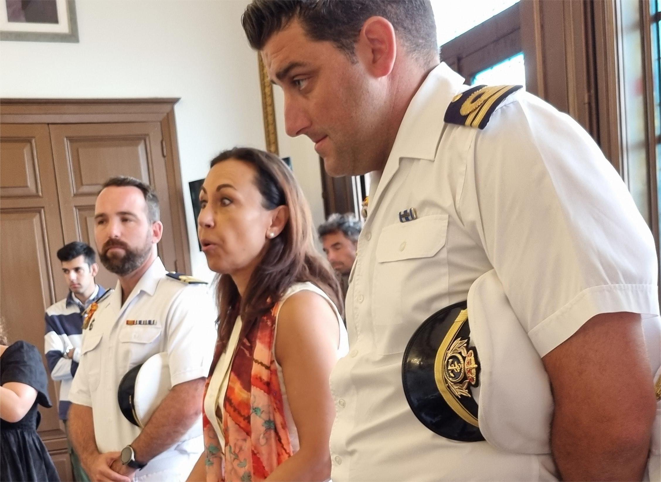 María Ramallo, alcaldesa de Marín, recibió en el salón de plenos del concello a los miembros de la nueva incorporación como aspirantes de primero en la Escuela Naval Militar que hicieron hoy su primera salida de la academia de la Armada con sus mandos inmediatos con el fin de cumplir el que ya es un rito al comienzo de sus carreras de saludar al pueblo que les tendrá como vecinos durante los próximos cinco años y, a muchos de ellos, aquí destinados cuando sean ya oficiales de la Armada.
