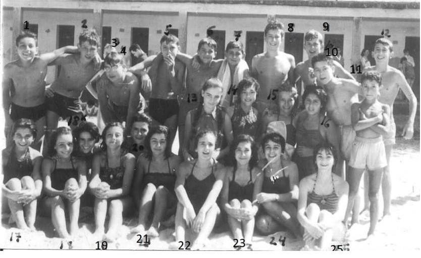 Nuestro comunicante nos remite también la identidad de la mayoría de los que aparecen con el número que tienen impreso en la foto: 1 Lino Beloso; 2 Luís Adolfo Rocafort del Hierro; 3 José Luis Santos Moreira; 4 No identificado; 5 Carlos ; 6 No identificado; 7 “Lito”; 8 José Manuel Alcántara Rocafort; 9 Juan Alcántara Rocafort; 10 Manuel Vigil Bamio; 11 Hermano de Marilines; 12 Joaquín Aparicio Nantes; 13 Ángeles N.N. “Angelita”; 14 Lola Touriño Touriño; 15 Isabel Sancho Casas; 16 Marilines; 17 Marisa Lago; 18 Elisa Massó Milleiro “Gilda”; 18bis Pilar Cerecedo Cardama; 19 Herminia; 20 Piluca Torres Baamonde; 21 Maruja Massó Milleiro; 22 Marisa Lombardía Guiance; 23 Elena Casal Sánchez; 24 Marité Solla y 25 Maribel Martin Casado.