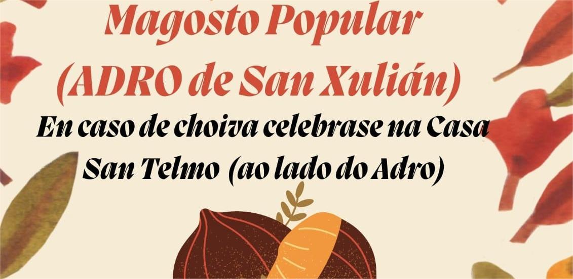 La Asociación de Festas Amigos de San Xulián vuelve a organizar el magosto en la parroquia el próximo domingo 3 de noviembre, empezando la fiesta a las 17:00 de la tarde en el atrio parroquial aunque, en caso de lluvia, el evento se celebrará en la Casa de San Telmo, al lado del adro.