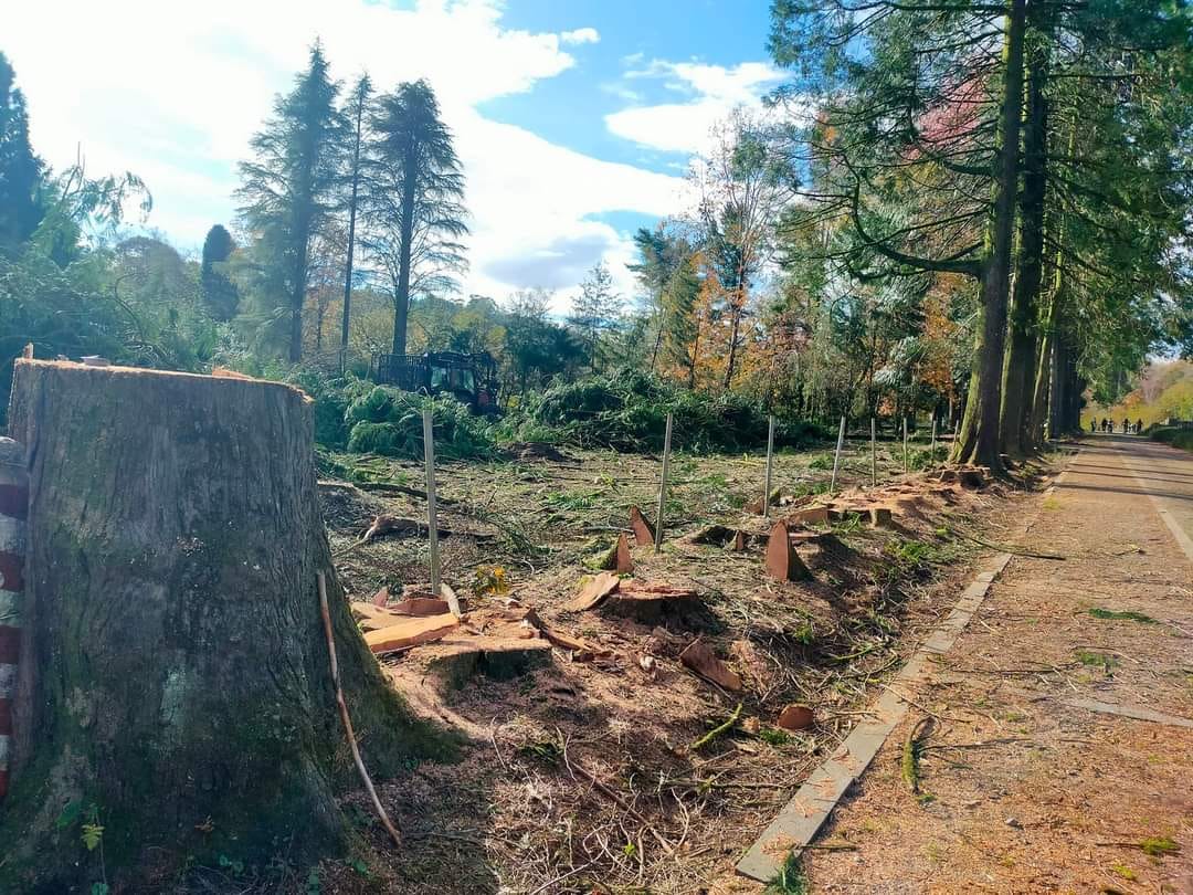 No sé dónde he leído que la disculpa que han puesto es que no sé quien ni se de dónde, ha dicho que los árboles estaban atacados de unos hongos y me parece que esa cantinela les sirve, una y otra vez, para meter la motosierra por la base y llevarse por delante ejemplares que estaban ahí cuando nacieron los de la dichosa Comunidad de Montes y quienes les dijeron, si se lo dijeron, que tenían gripe de hongos. Es lo mismo que justificaron cuando destrozaron la plantación también probablemente centenaria que estaba justo en frente de aquella preciosa línea de tuias que ya no podremos volver a ver jamás.