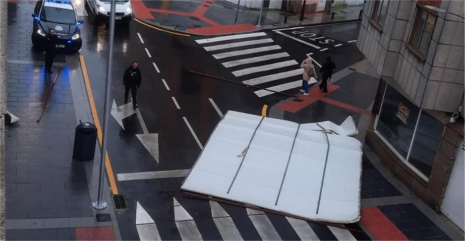 Sobre las cuatro de la tarde, miembros de la brigada de obras y de la Policía Local, que se encuentra en alerta como consecuencia de la intensidad del temporal procedieron a la retirada de la cubierta que fue despiezada antes de embarcarla en el camión municipal, utilizado al efecto.
