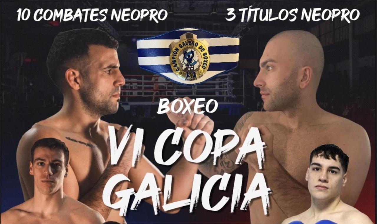 La VI Copa Galicia de Boxeo tendrá lugar el próximo 8 de marzo en Marín, su sede desde los inicios y selecciones de norte y sur lucharán por llevarse la copa. En esta ocasión será un evento íntegramente en categoría NeoProfesional con 7 combates a 3 rounds y 3 combates a 5 rounds por los cintos gallegos NeoProfesionales del peso superwelter, del peso medio y del peso pesado.