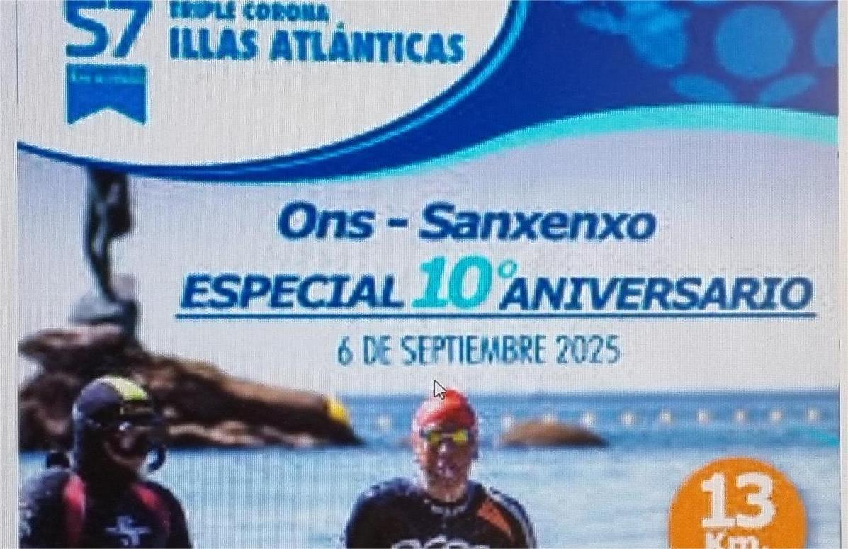 A proba deportiva “Tripla Coroa Illas Atlánticas de Galicia” vén de abrir o prazo de inscrición para participar na travesía a nado que terá lugar o vindeiro 6 de setembro entre a praia de Area dos Cans, na illa de Ons, e o areal de Silgar, en Sanxenxo, de 13 quilómetros de distancia. Este ano, como novidade, organizaranse dúas probas infantís gratuítas de 50 e 150 metros na praia de Silgar