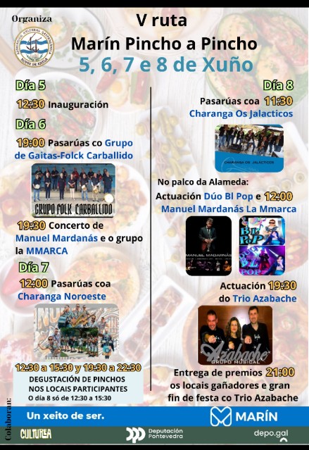 Manuel Area anuncia también un denso programa de actividades lúdico-culturales contando con la participación del grupo folclórico “Carballido”; Manuel Mardanás y el grupo “NMarca”; Charangas “Noroeste” y “Jalácticos”; Trío “Azabache”; Dúo Bi Pop y alguna sorpresa pendiente todavía de confirmar con lo que Marín será una fiesta durante la celebración de la ruta.