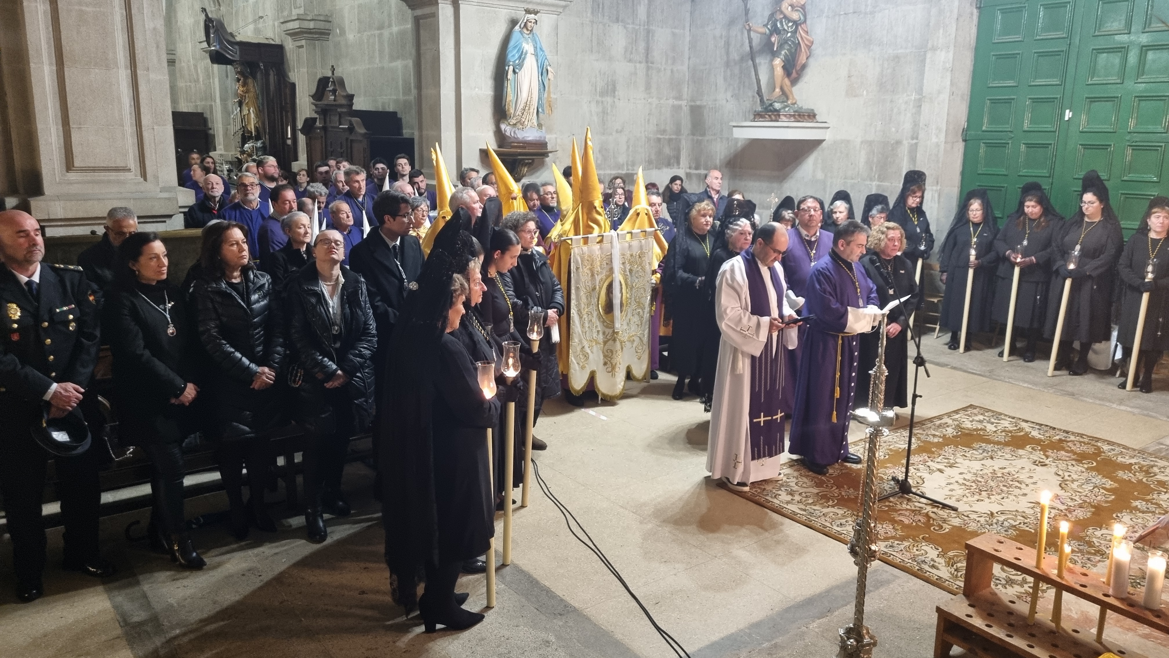 El acto tuvo lugar en el pasillo central del templo donde se produjo el reencuentro de ambas imágenes bajo un respetuoso silencio de los asistentes con posteriores interpretaciones musicales tanto de la banda “Xente Nova” como la de la Escuela Naval que se ubicó en el coro del templo.