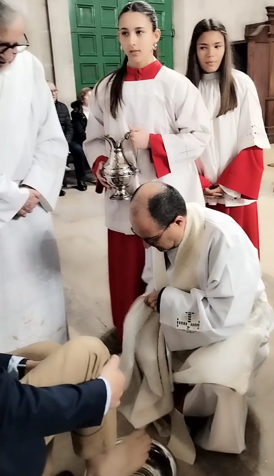 “Lavatorio de pies” oficiado por el propio cura párroco que invitó a las personas que quisieran participar y al término de la Eucaristía fue trasladado al altar lateral la Reserva del Santísimo que quedó expuesta hasta los oficios de esta tarde y donde se celebró, dos horas antes de la procesión nocturna, la