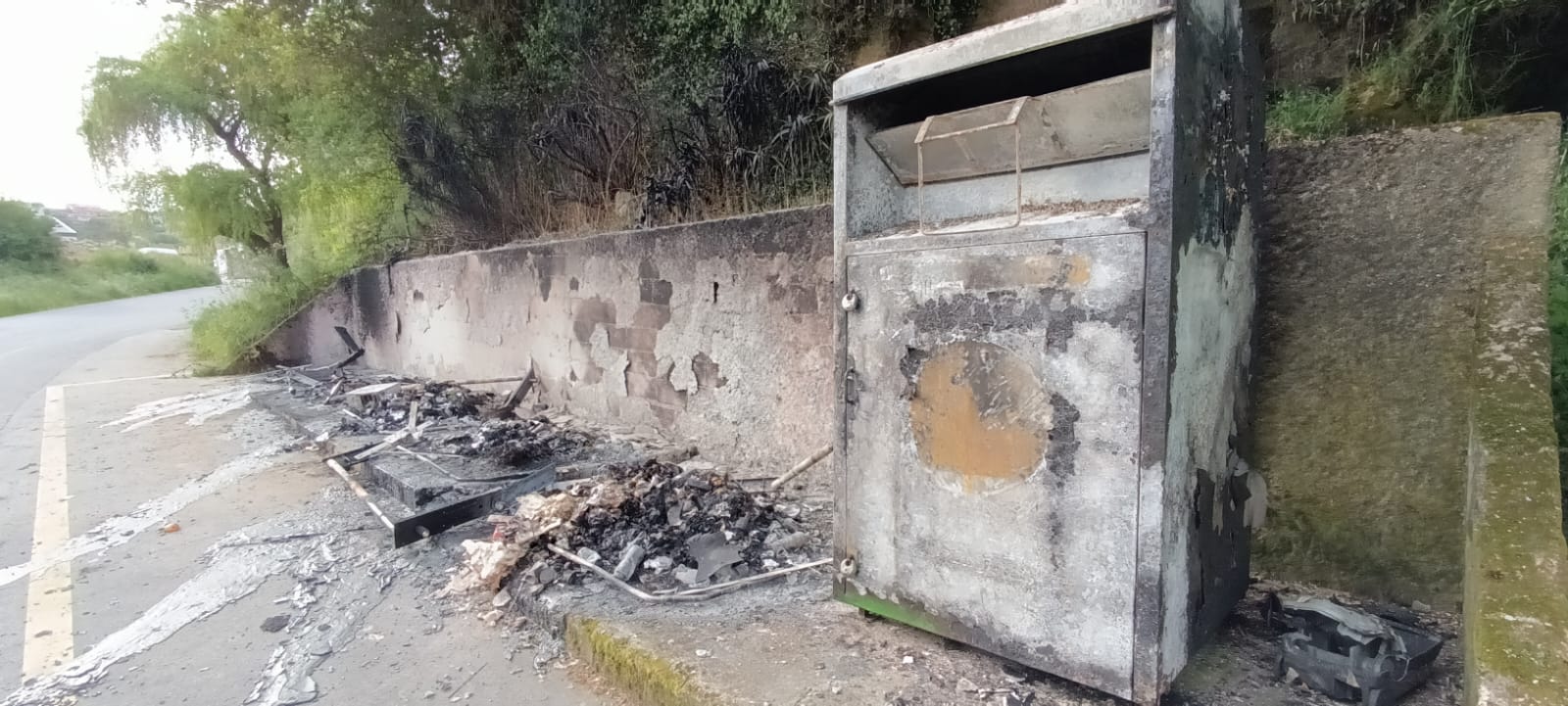 Los vándalos no descansan. Aprovechan cualquier momento y cualquier situación para efectuar sus acciones, cuyas consecuencias terminamos pagando todos los ciudadanos, y esto fue lo que pasó en la parroquia de Mogor esta madrugada: aprovechando la oscuridad provocado por el apagón general que comenzó a mediodía de ayer lunes, fueron quemados de manera intencionada cinco contenedores en la barriada de Mogor, otro delante de la iglesia y una pequeña máquina de asfaltado que se encontraba trabajando estos días en la zona de Monte de Mogor.