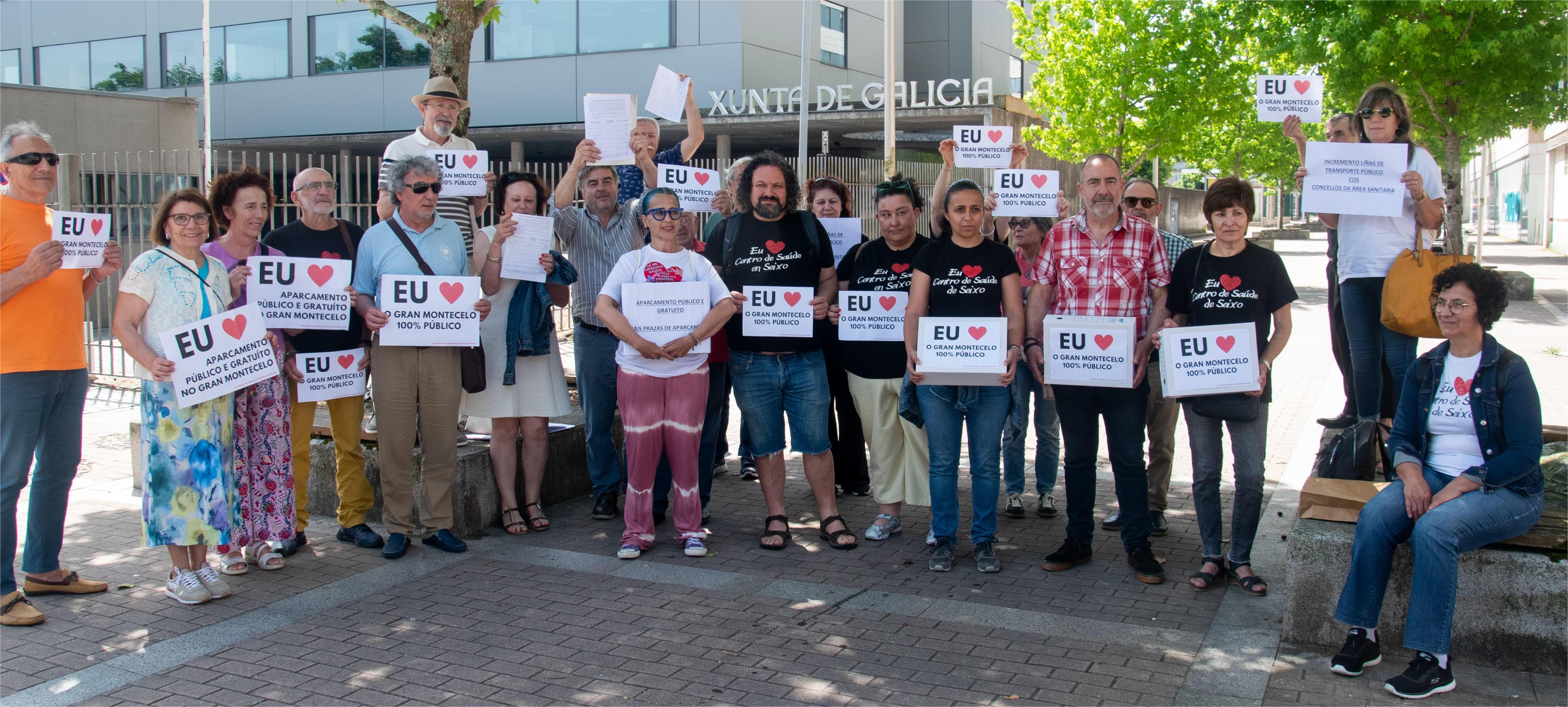 A Plataforma pola Defensa do Centro de Saúde de Seixo e Marín, canda o resto das Plataforma da Área Sanitaria (Salnés, Sanxenxo, Cerdedo e Pontevedra) rexistraron onte no edificio da Xunta en Campolongo 12.034 sinaturas para que non se privatice o aparcamento do Hospital Gran Montecelo, se aumenten as prazas de aparcamento e as liñas de transporte que conecten os concellos da área co hospital.