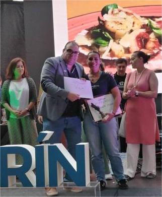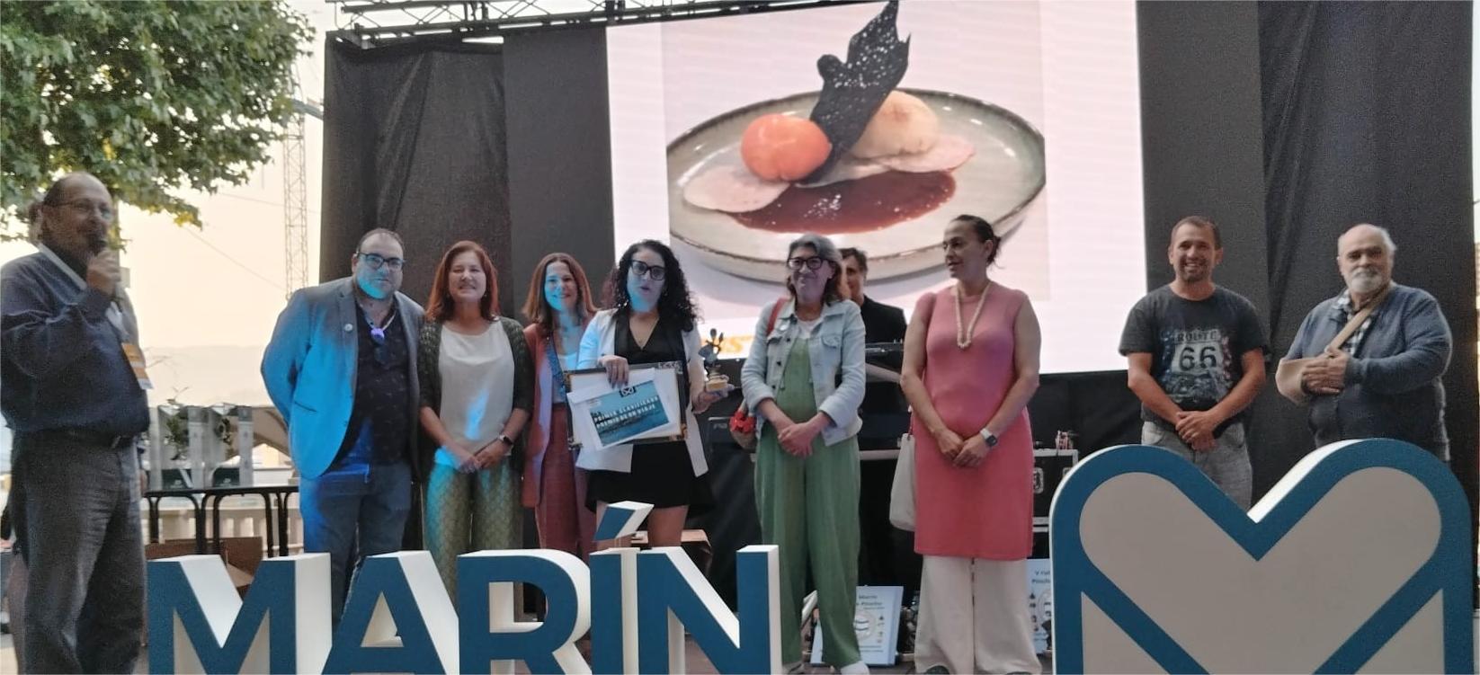 Cafetería La Real por su pincho 'Realmente bueno 2.0' que sus representantes recogieron de manos de la Concejala de Turismo del Concello de Marín, Cristina Acuña.