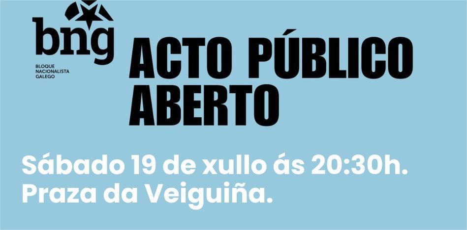 O BNG convida á veciñanza a asistir a un acto público, este sábado 19 de xullo ás 20:30 horas na Praza da Veiguiña, para conmemorar o Día da Patria Galega.