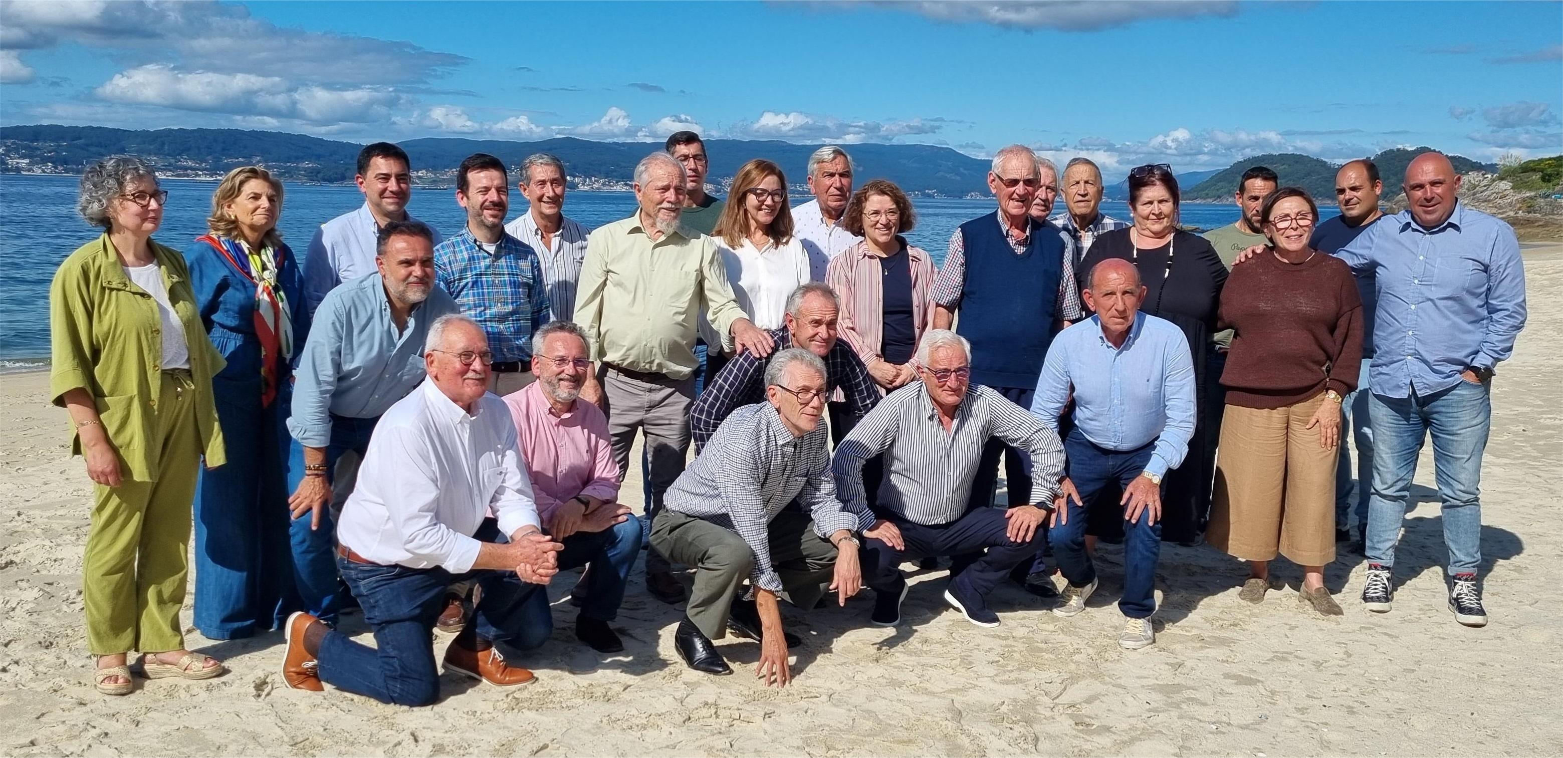 Aprovechando su ocasional estancia en nuestra villa, los armadores de la zona decidieron rendirle un sencillo pero caluroso homenaje de reconocimiento a su labor de tantos años en apoyo de la flota española y sus tripulaciones y junto con patrones de buques en tierra e incluso jubilados, compartieron con él un almuerzo en el restaurante Loureiro de Bueu en cuyo transcurso incluso hubo ocasión de cantarle el