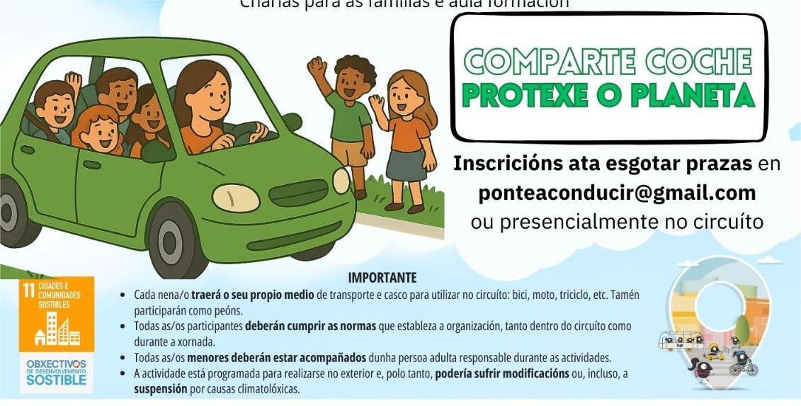 Es una actividad dirigida a niños y niñas de edades comprendidas entre los 3 y los 12 años y las familias interesadas en que sus pequeños participen deberán realizar la previa inscripción en el correo ponteaconducir@gmail.com.