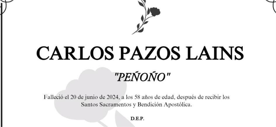 La funeraria SAN MARCOS comunica que, en la sala 1 del tanatorio en Marín, se velan los restos mortales de Carlos Pazos Laíns “Peñoño”, ...
