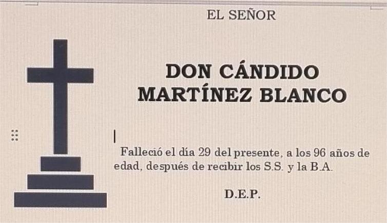 La funeraria LA FE comunica que en la sala 1 del tanatorio San Marcos en Marín se velan los restos mortales de Don Cándido Martínez Blanco, ...