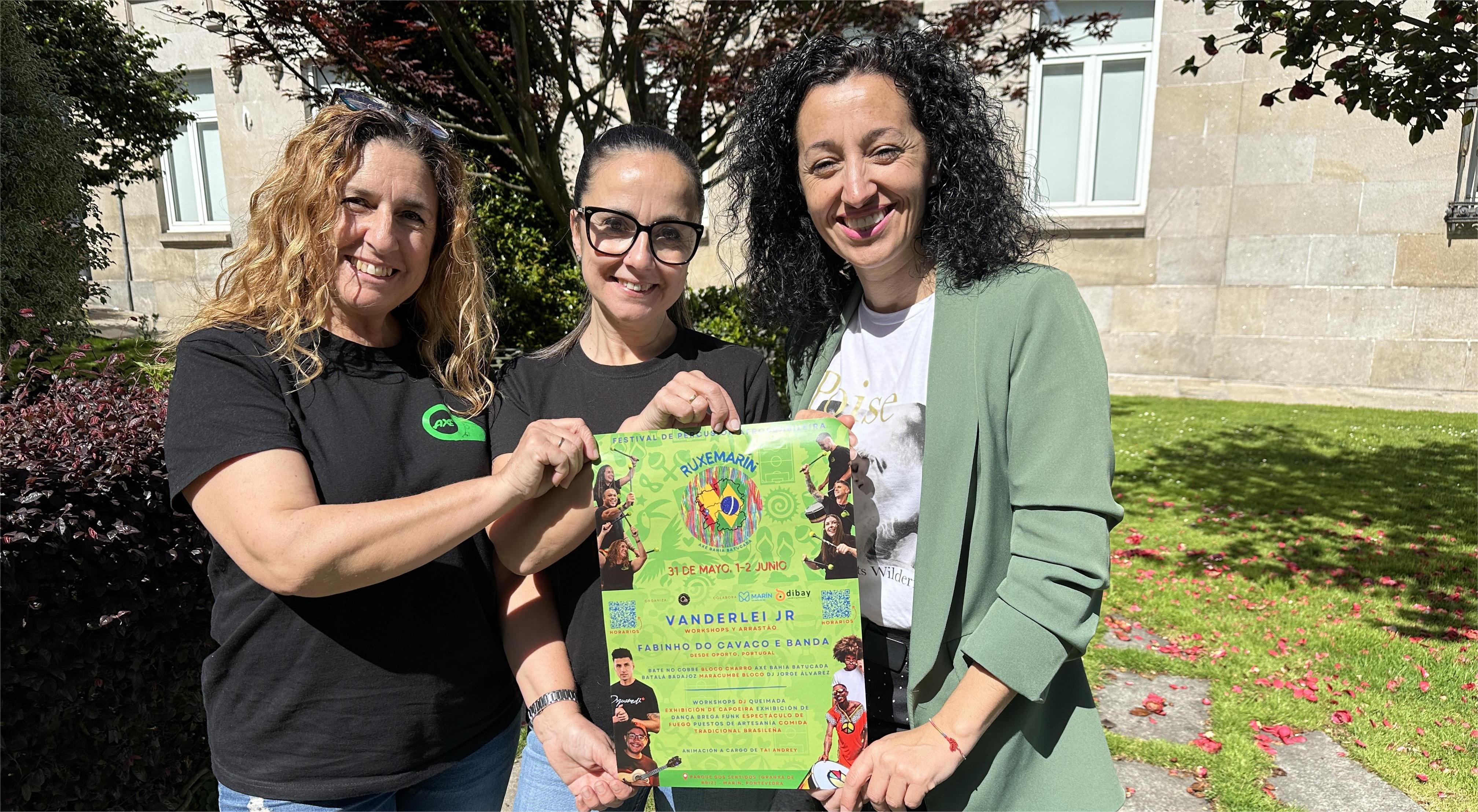 Axe Bahía Batucada junto a la concejala de fiestas Marián Sanmartín, presentaron ayer el evento de cultura brasileira que inundará Marín con ...