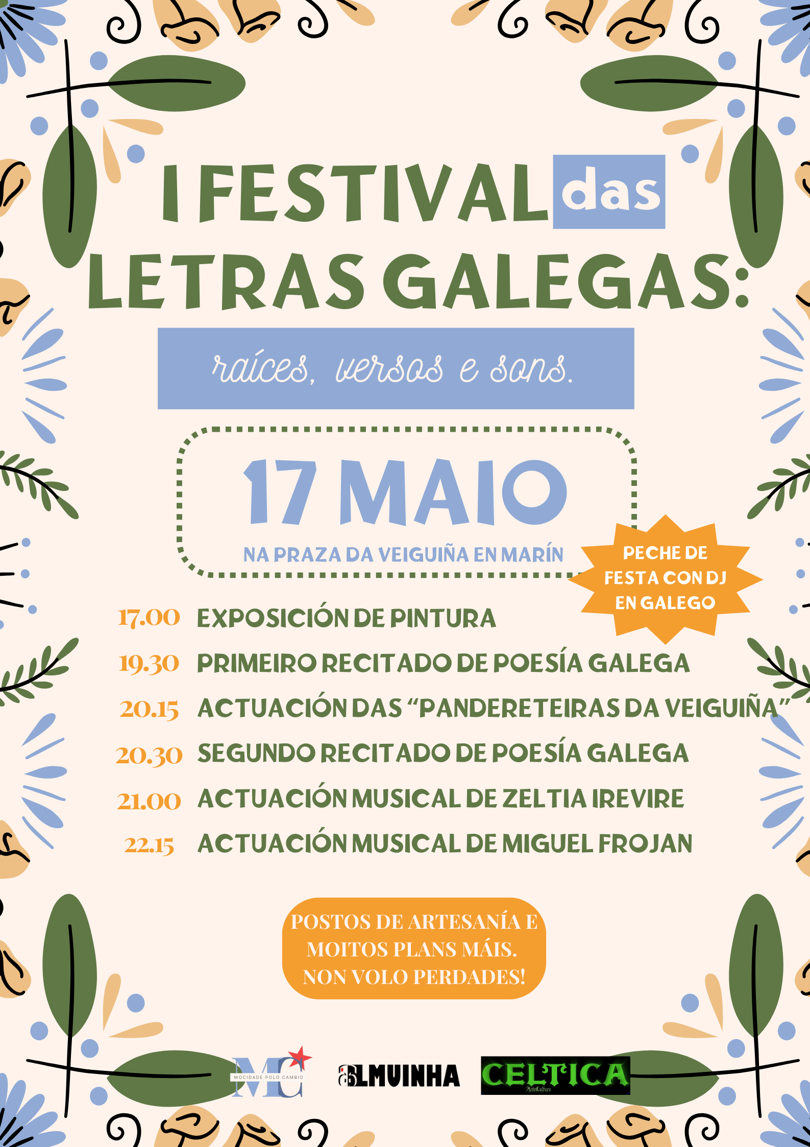 O próximo 17 de maio, en conmemoración do Día das Letras Galegas, celebrase o I Festival Raíces, Versos e Sons que comezara ás 17:00 horas na ...