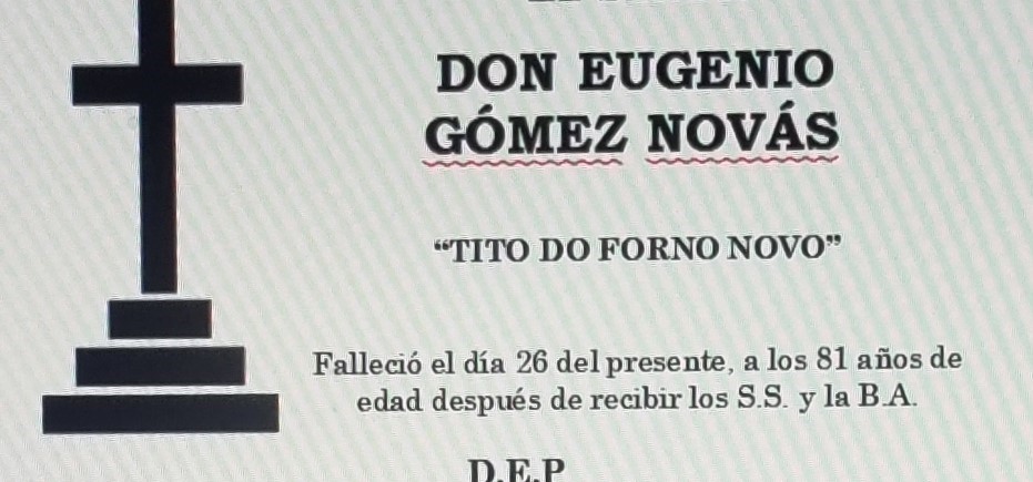 La Funeraria San Marcos informa que, en la sala de velaciones número 1 de su tanatorio de Marín se encuentran los restos mortales de D. Eugenio ...