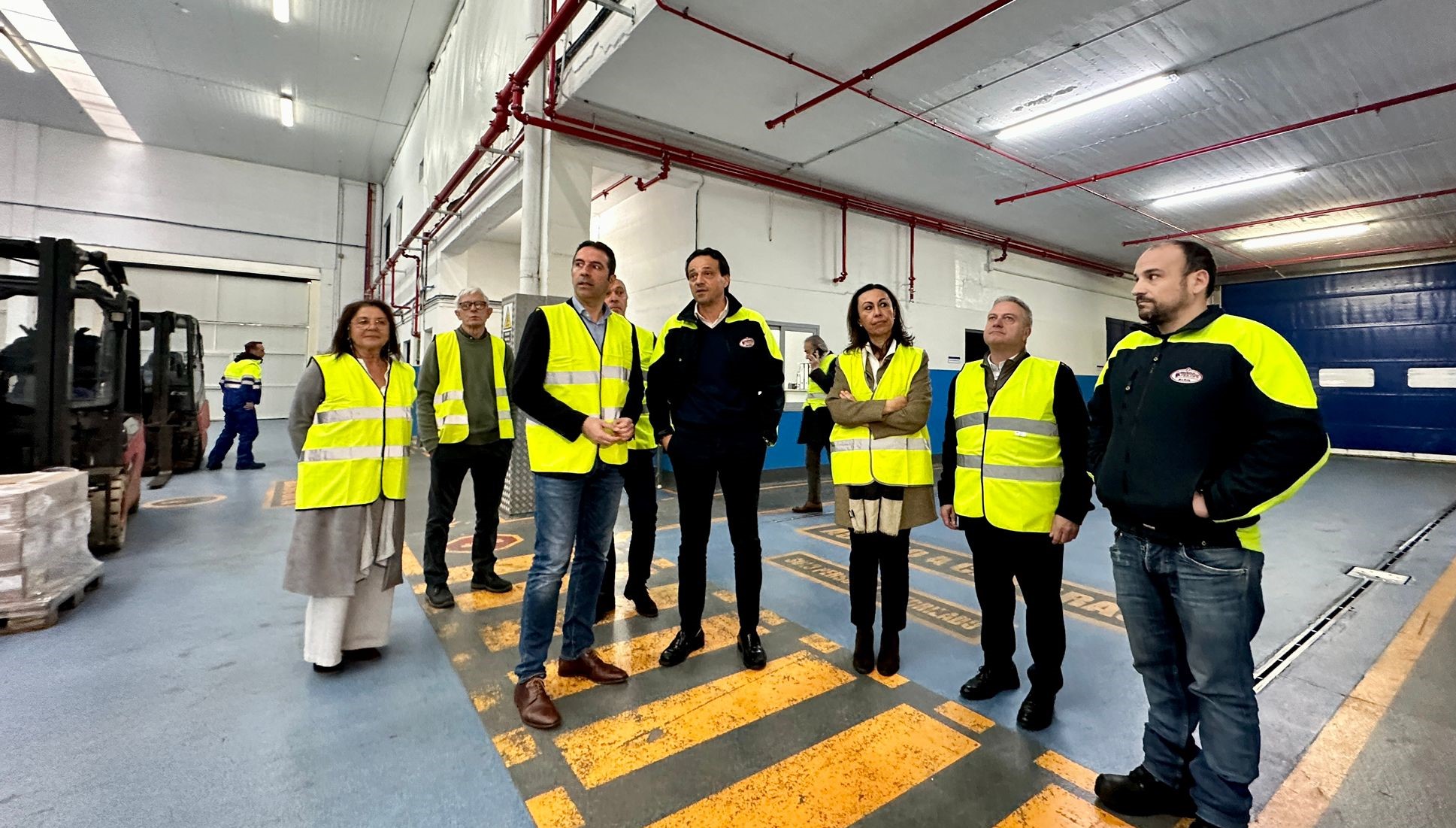 O Conselleiro en funcións Alfondo Villares, acompañado da alcaldesa María Ramallo, o presidene do porto marinense Suárez Costa e outras ...