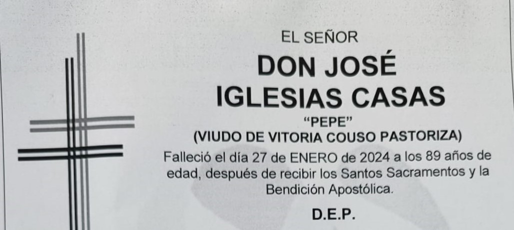 La Funeraria Albia comunica que, en la sala número 1 de su Tanatorio en Marín, se velan los restos mortales de D. José Iglesias Casas, fallecido ayer, día 27 de ...