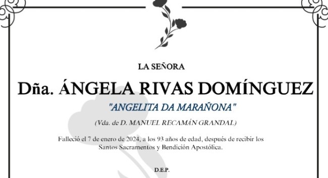 La Funeraria San Marcos comunica que, en la sala número 1 del Tanatorio en Marín, se velan los restos mortales de Doña Ángela Rivas Domínguez (Angelita da ...