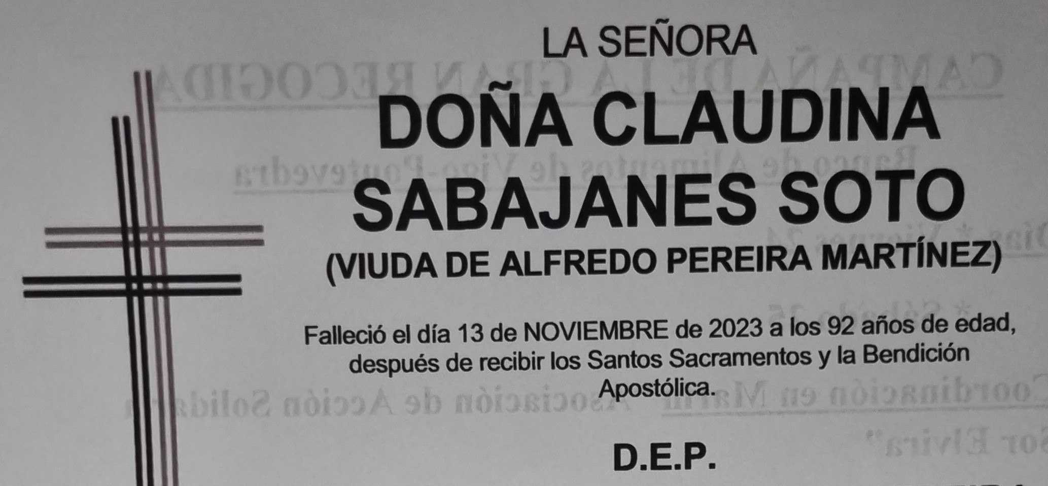La Funeraria Albia comunica que en su tanatorio de Marín se velan los restos mortales de la vecina de Marín Doña Claudina Sabajanes Soto. fallecida hoy lunes día ...