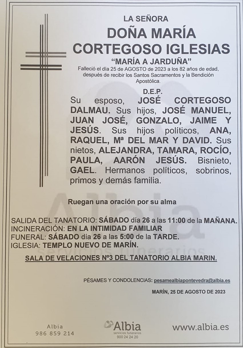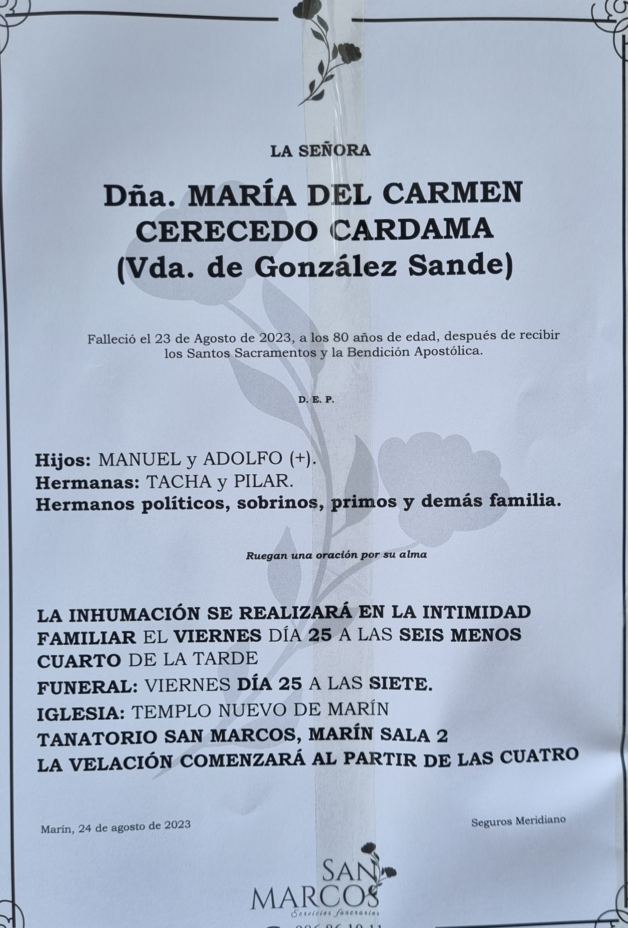 Tenemos que registrar la triste noticia del fallecimiento de María del Carmen Cerecedo Cardama, a los ochenta años de edad, persona muy conocida en ...
