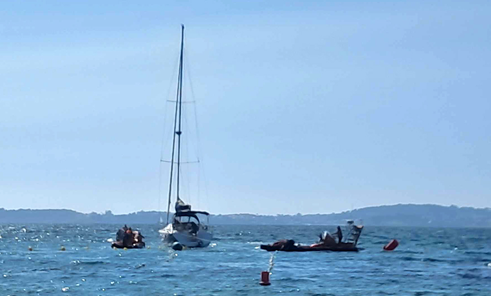 Las balizas de delimitación de la zona de baño demostraron su efectividad al evitar que el barco acabase encallado en la playa
