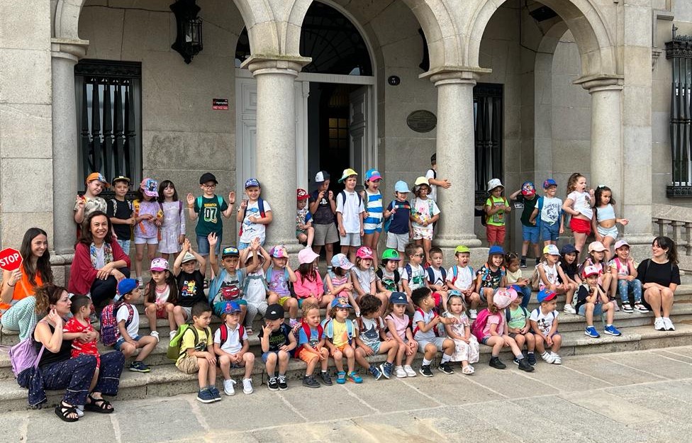 Los niños departiendo con la alcaldesa en el salón de plenos