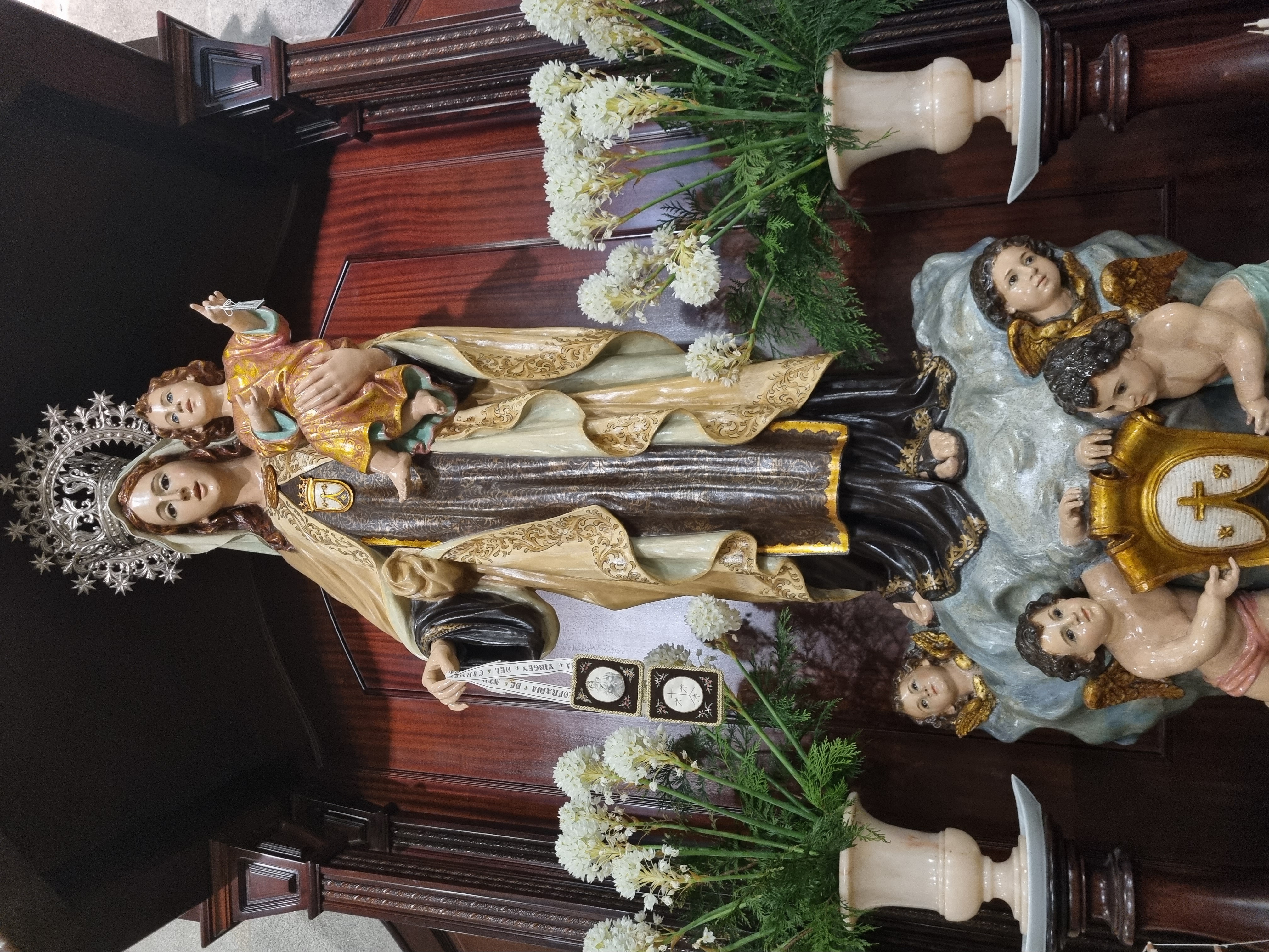 La imagen de la Virgen del Carmen que se venera en el Nuevo Templo de Marín luce ya su belleza recuperada por la restauradora Paula Solla que también hizo lo ...