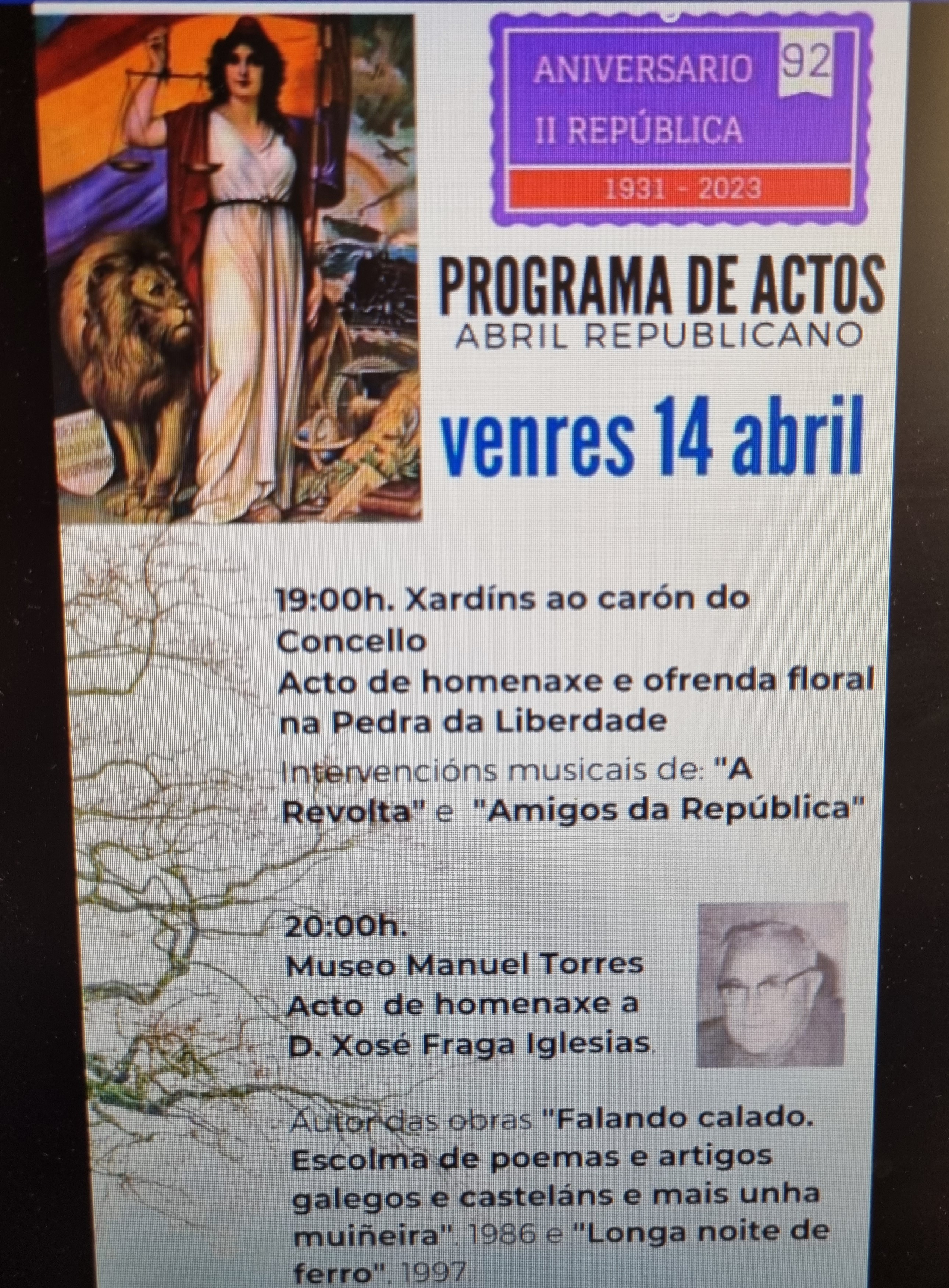 Xosé Fraga Iglesias será recordado por los simpatizantes de la República el próximo día 14 de este mes durante los actos del aniversario de la II Repúblicas ...