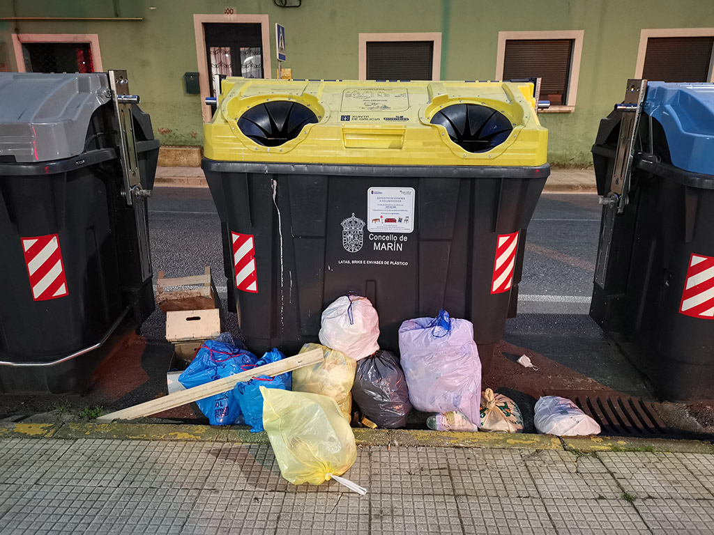 Por mucho que avisen, en ésto como en otras cosas, hay quien no hace ni caso seguramente hasta que le caiga una buena multa por incivismo. Y es que día tras día, las cercanías de muchos contenedores se encuentras así como se ve en esta foto, con las bolsas de basura por fuera con lo que el espectáculo en muchos casos es verdaderamente bochornoso, como lo es también que se abandonen colchones y muebles de gran tamaño sin avisar al servicio especial de recogida de voluminosos que hace un trabajo muy satisfactorio cuando se requiere adecuadamente su asistencia.