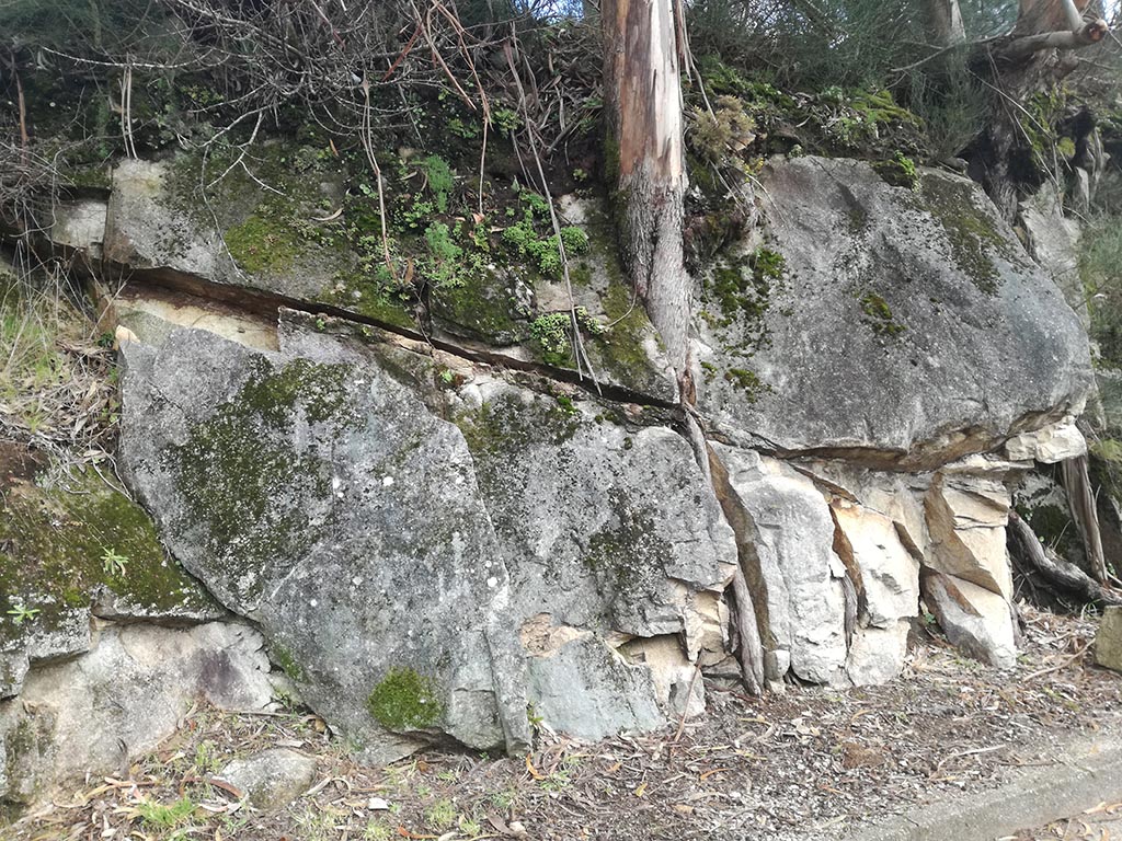 En esta fotografía captamos un peligro latente que viene manifestándose ya desde hace tiempo y al que nadie parece hacerle el menor caso. Se trata de la “pared” del vial de playas justamente antes de llegar a los Petróglifos. Es la falda del monte donde crecen los eucalíptos que son árboles agresivos donde los haya. Y son varios los que hunden sus raíces en la misma piedra buscando agua donde sea, y son capaces, como se puede ver en la imagen, de resquebrajar la roca para ir dejando sueltas grandes y pequeñas porciones de la misma que, cualquier día darán un disgusto porque por allí pasan muchas personas y, sobre todo, aparcan vehículos justamente debajo de este desaguisado. Por avisar no será, y lo digo porque no es la primera vez que esta advertencia sale a la luz