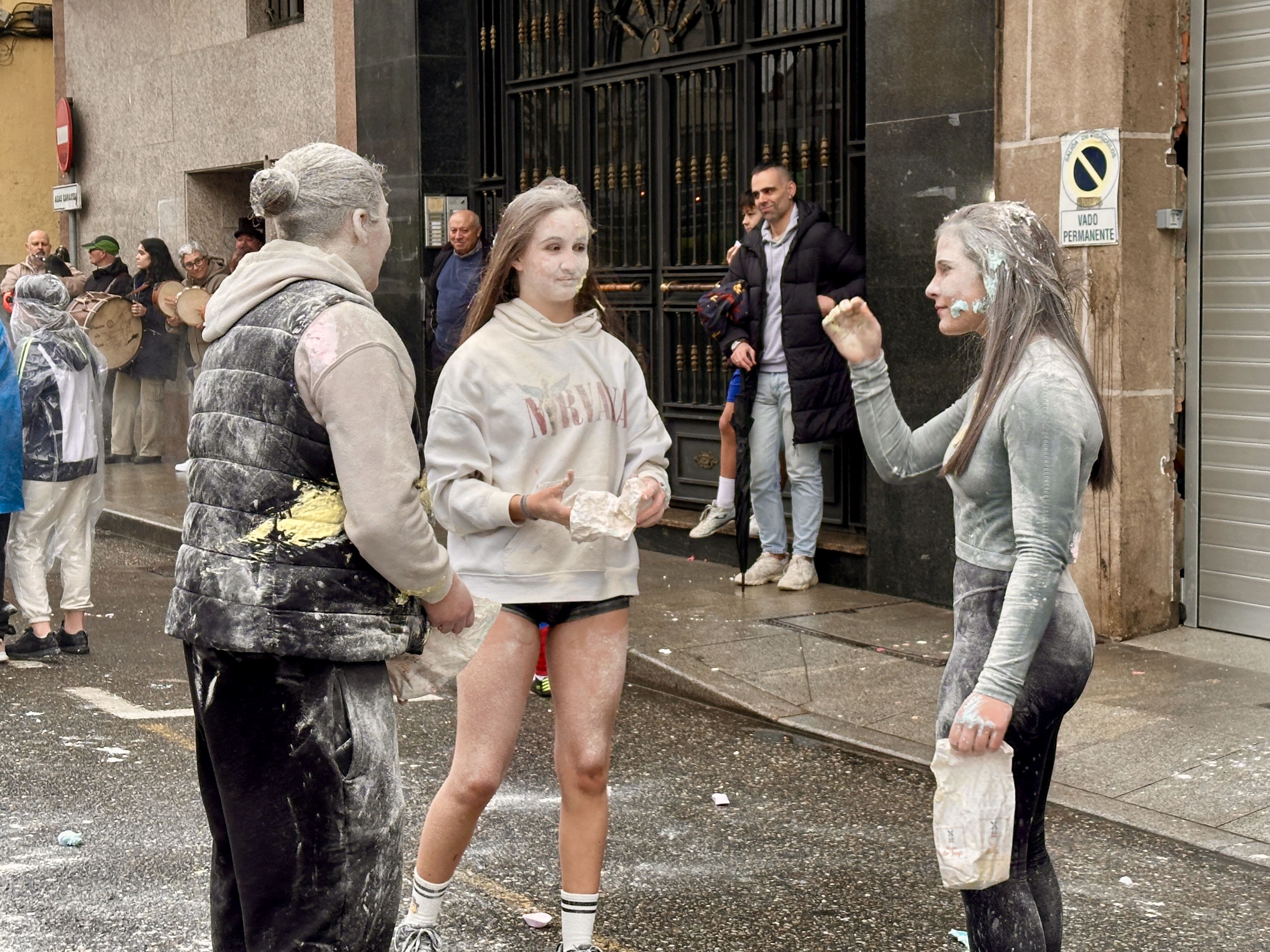 A festa do merengue, que cada luns de carnaval celébrase na Lameira coa organziación de “Amigos dos Rapaces”, veuse un pouco deslucida porque a chuvia persistente non colaborou moito na acelebración ainda que houbo merengues para todos e as pelexas fariñentas que están de moda neste día, tamén.