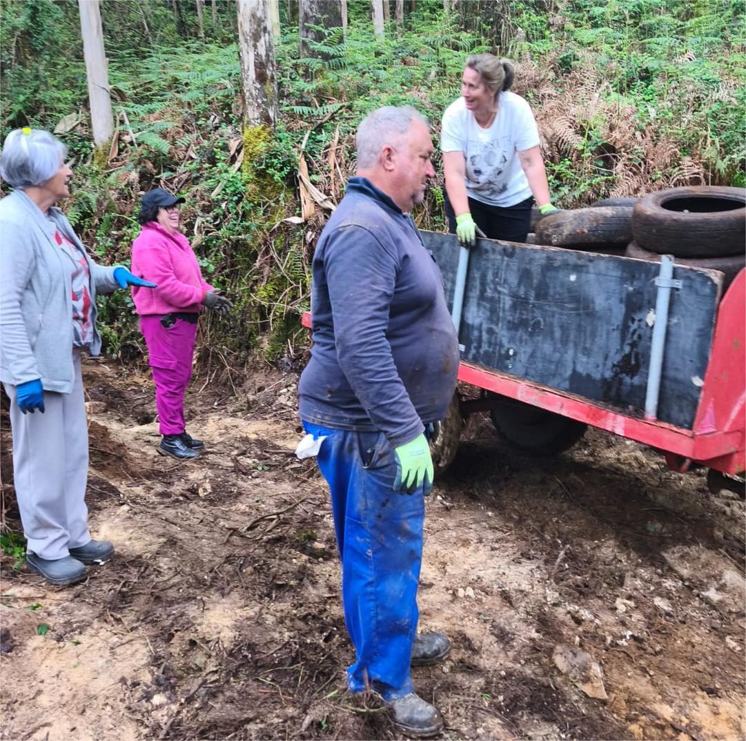 “Asociación de Veciños de Monte Castelo” y la “Comunidade de Montes de Ardán” con una encomiable iniciativa para retirar los neumáticos de donde se encontraban y así evitar la contaminación que ello produce , contando con la colaboración del Concello que se encargó de gestionar el traslado a un vertedero autorizado.