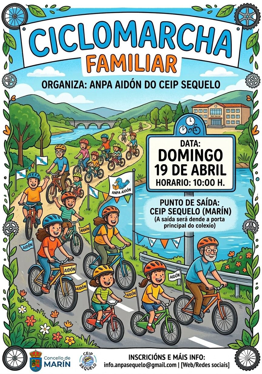 Y el mismo colectivo familiar de los escolares del Sequelo anuncian tambièn la organización de la “Ciclomarcha Familiar” que tendrá lugar el domingo día 19 de este mes y en el que podrán participar personas de todas las edades que puedan pedalear una bicicleta. La reunión será en la puerta principal del colegio y la salida está prevista para las diez de la mañana por un itinerario fácil para todos y sin peligro.