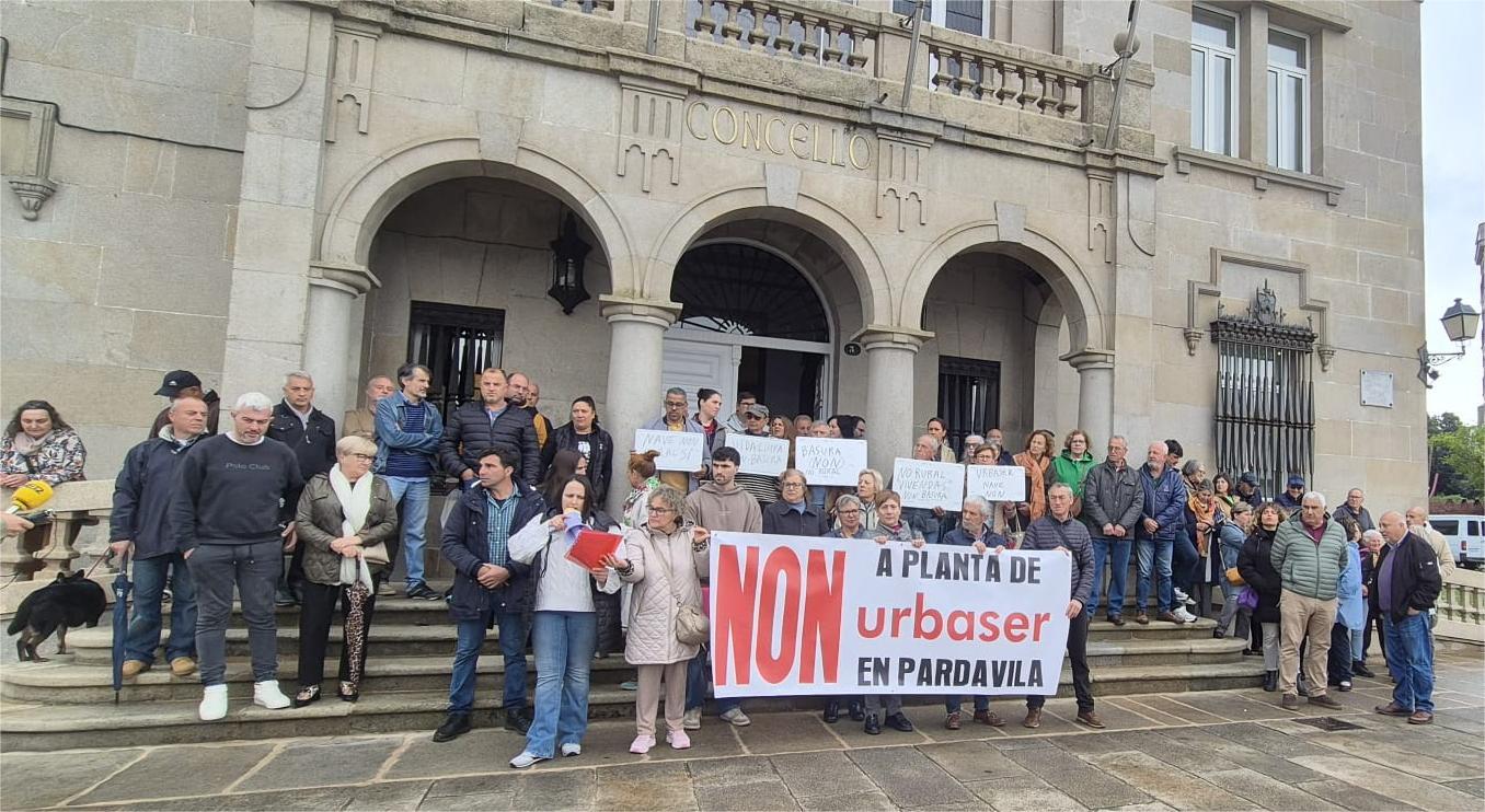 “Non á Planta de Urbaser en Pardavila” foi a consigna que os membros da “Plataforma Veciñal de San Xulián” deixaron patente onte na concentración que tivo lugar nas portas do Concello para expresar o rexeite á instalación da pretendida de operacións da empresa concesionaria da recollida do lixo