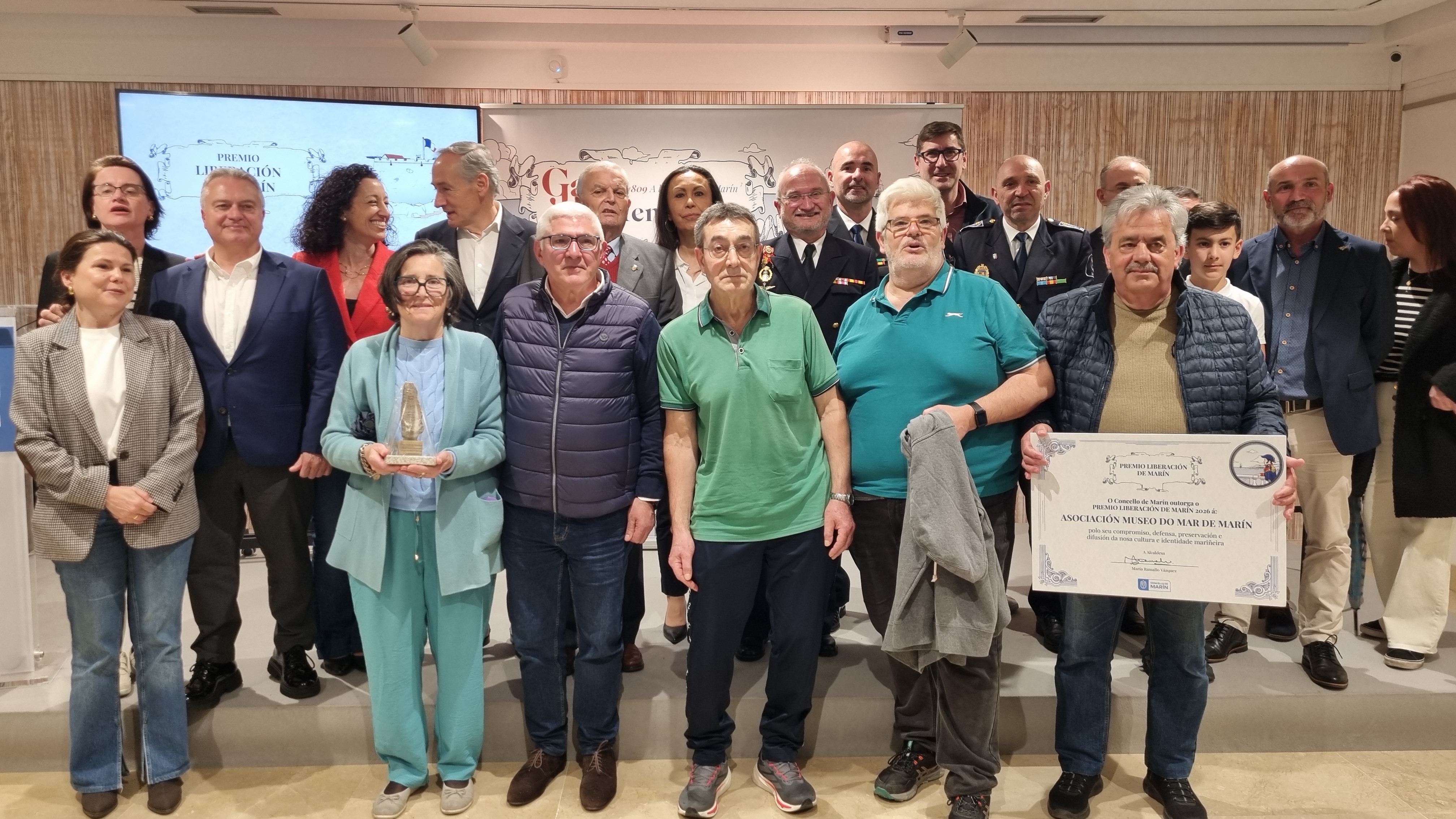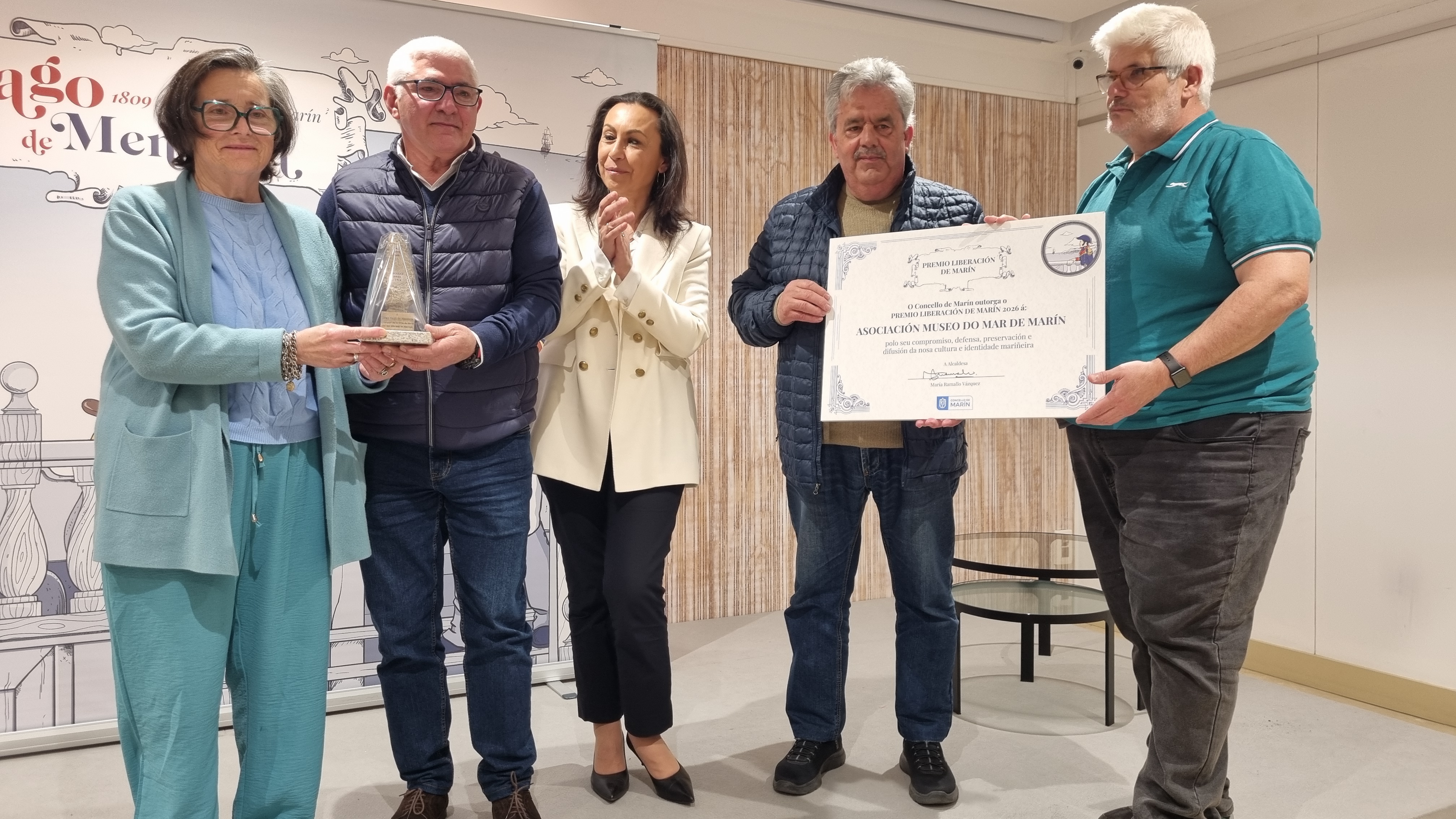 Terminó la regidora municipal agradeciendo la asistencia de autoridades y representaciones y las intervenciones de los ponentes en el acto y finalizó llamando a los miembros del Museo do Mar para hacerles entrega de la estatuilla y la placa del premio Libereación 2026.