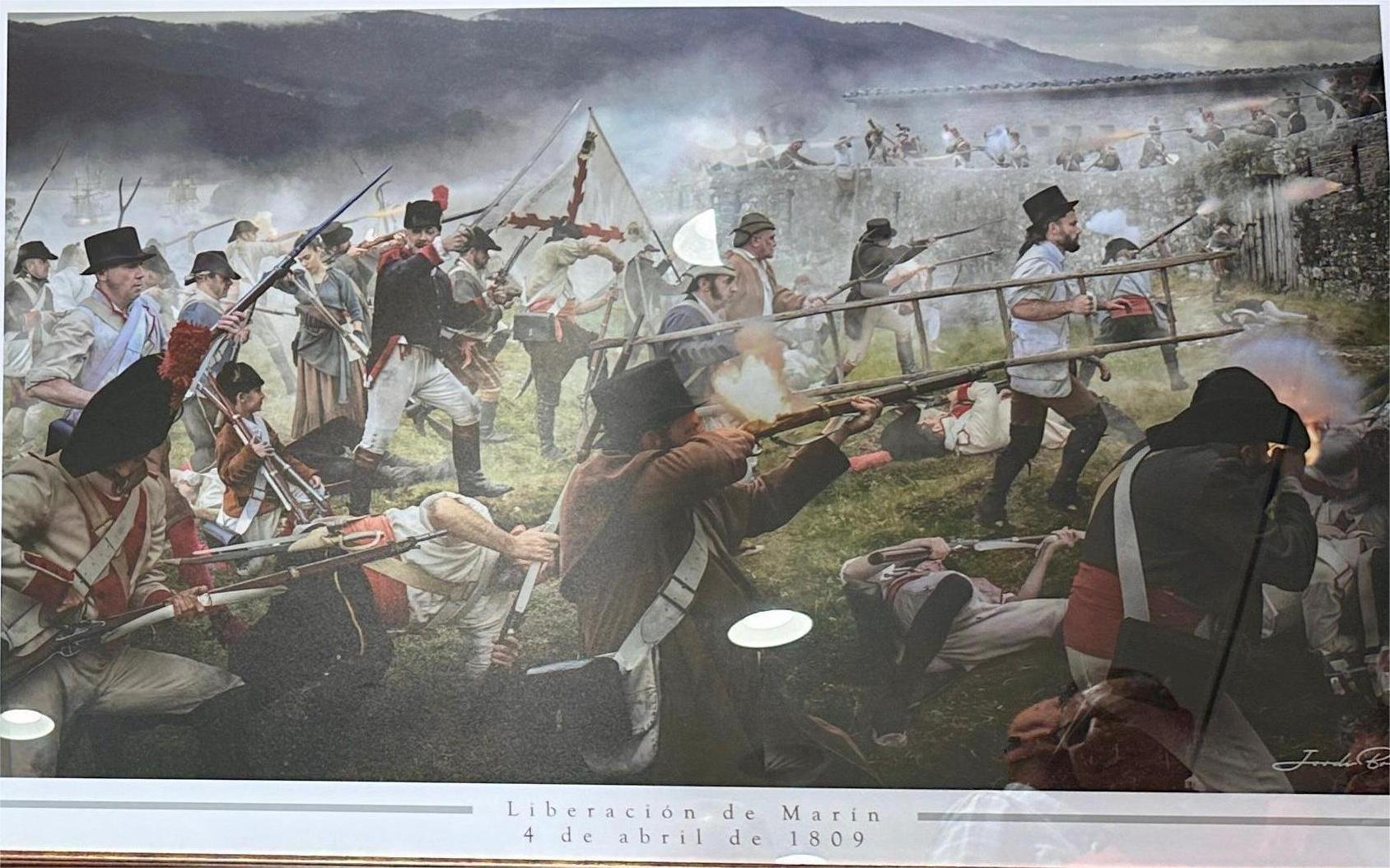 Sitúa el profesor a las fragatas inglesas “Venus”, “Ligely” y “Astatira” que proveían a los paisanos de la comarca de armas y apoyaban a las llamadas “Alarmas de Morrazo” quienes el día 4 de abril de 1809, capitaneados por Gago de Mendoza, se disponían a llevar a cabo la recuperación de la villa de Marín y, puestos de acuerdo con las tripulaciones de los navíos ingleses y con la colaboración del comandante de marina del puerto, Francisco Oliver, deciden atacar el fuerte de San Fernando donde se alojaba la guarnición francesa que ocupaba la villa.
